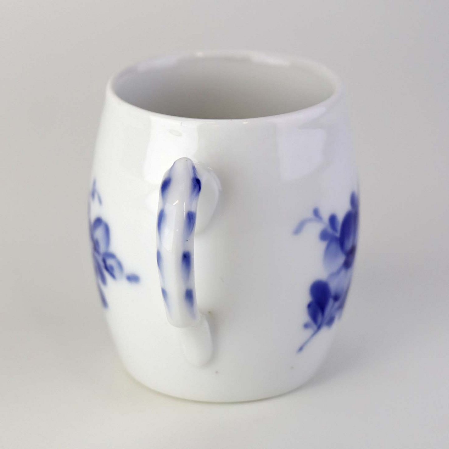 Stor sennepskop uden låg i kongeligt porcelæn fra stellet Blå Blomst flettet. Nr. 10/8206.Producent Royal Copenhagen