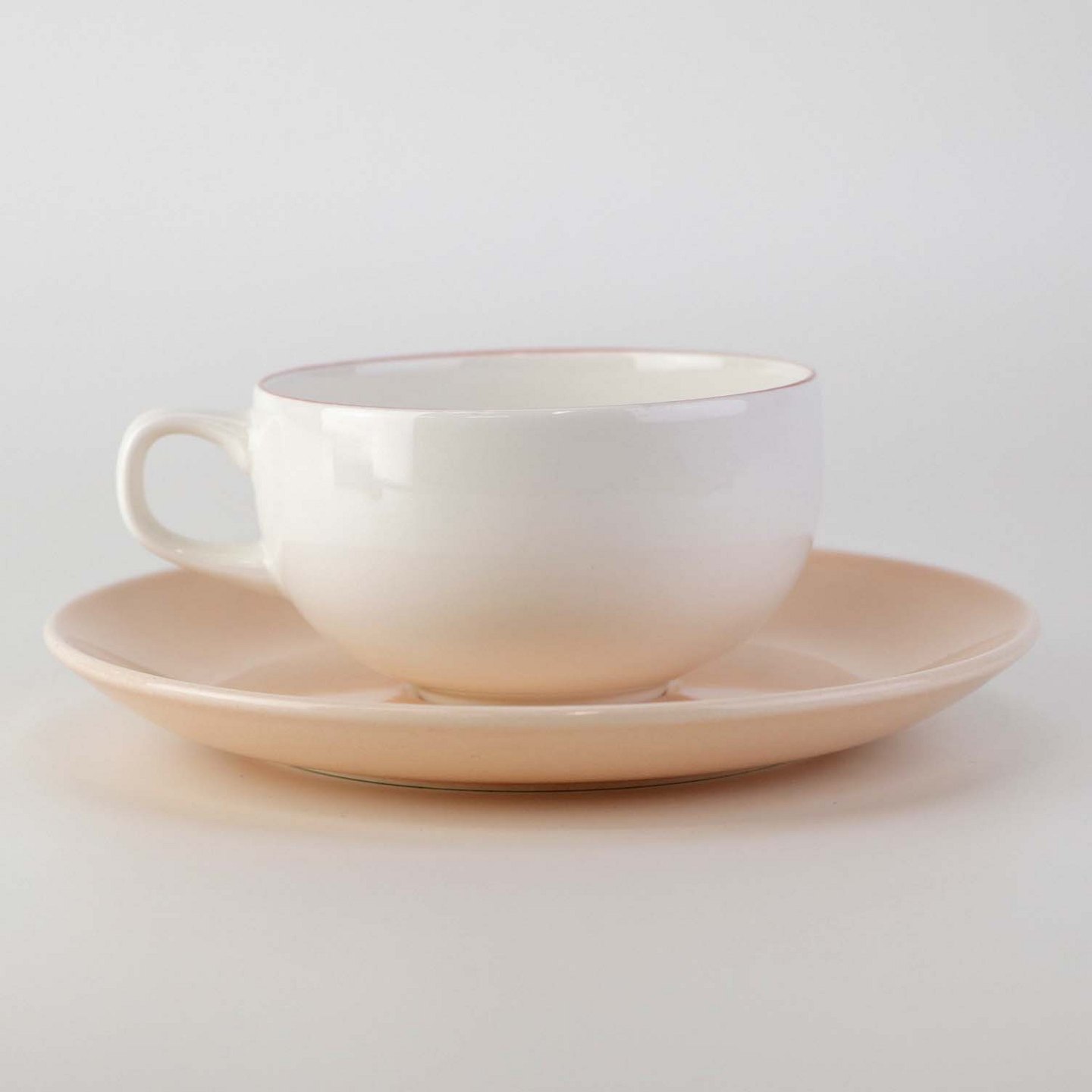 Lille morgenkop i fajance med rosa underkop fra stellet 4 All seasons nr. 069 og 073Produceret af Royal Copenhagen fajance