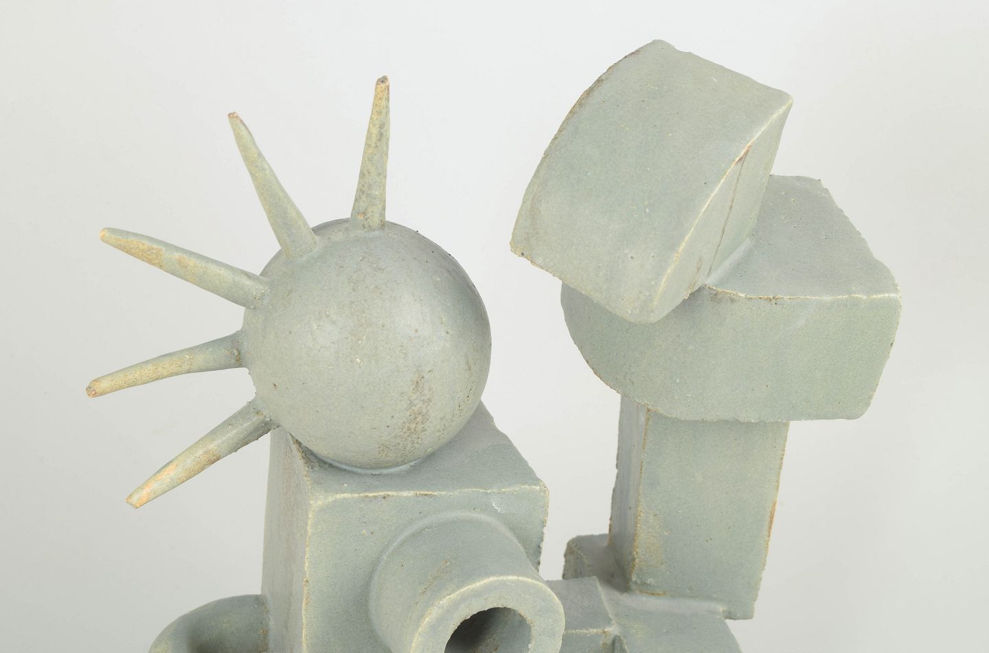 Stor stentøjsskulptur i kubistisk stil, med mat grå glasur overflade.