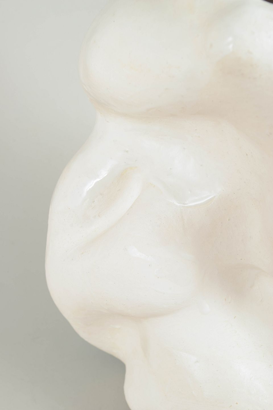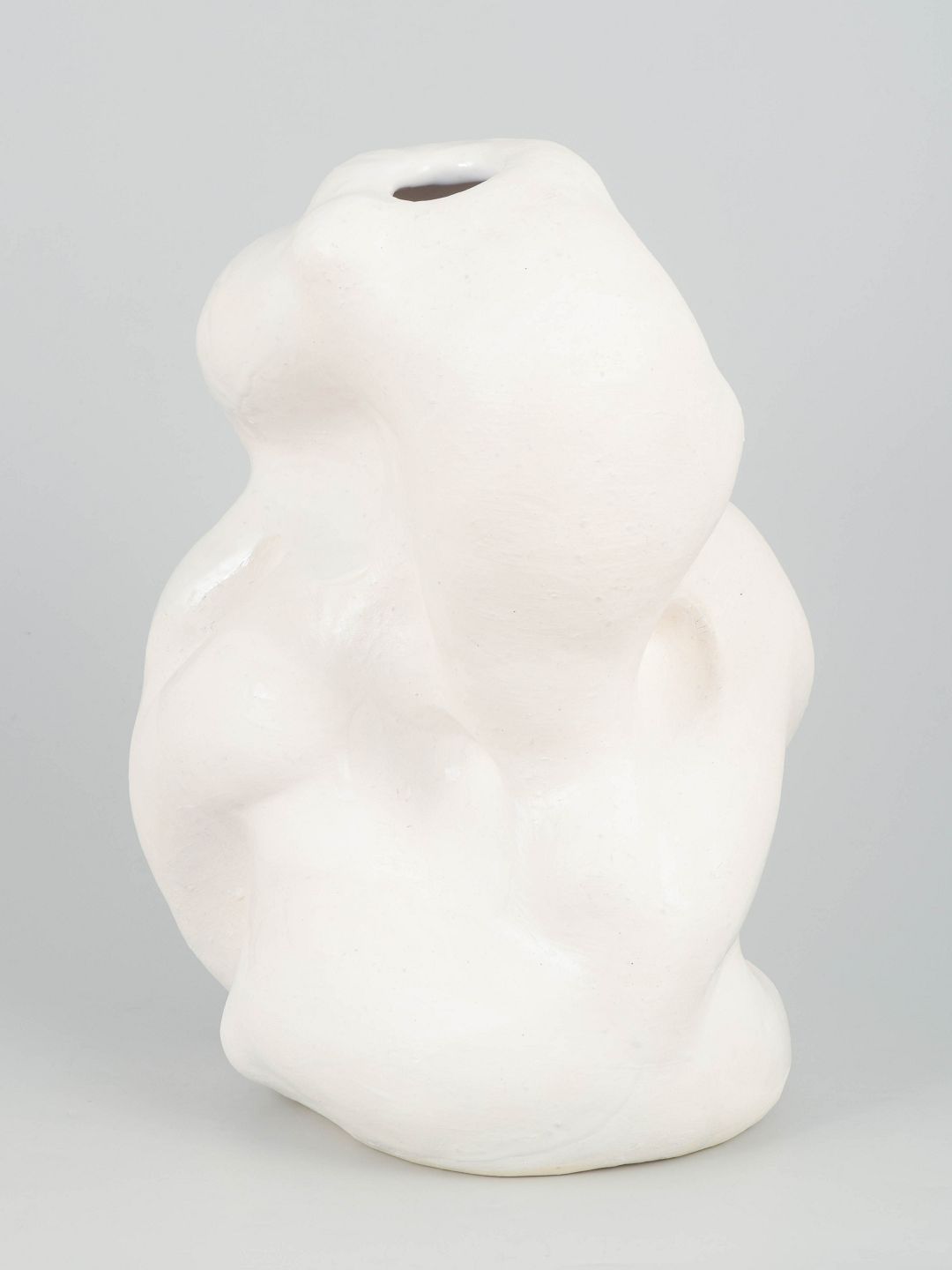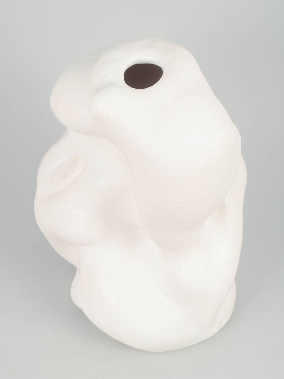 Christina Muff, dansk samtidskeramiker (f. 1971).Unika stentøjsvase, organisk formet. Værket er dækket af et tyndt lag mat hvid porcelæn og pletvist penselglaseret med hvid, blank glasur.
