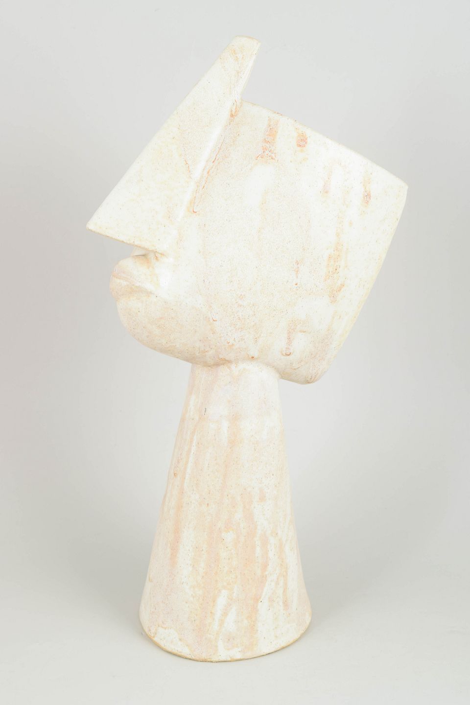 Christina Muff, dansk samtidskeramiker (f. 1971). Stort kubistisk unika ansigt med cremehvid mat glasur.Navn: 'Keep your head held high' fra Kilnfolk serien.