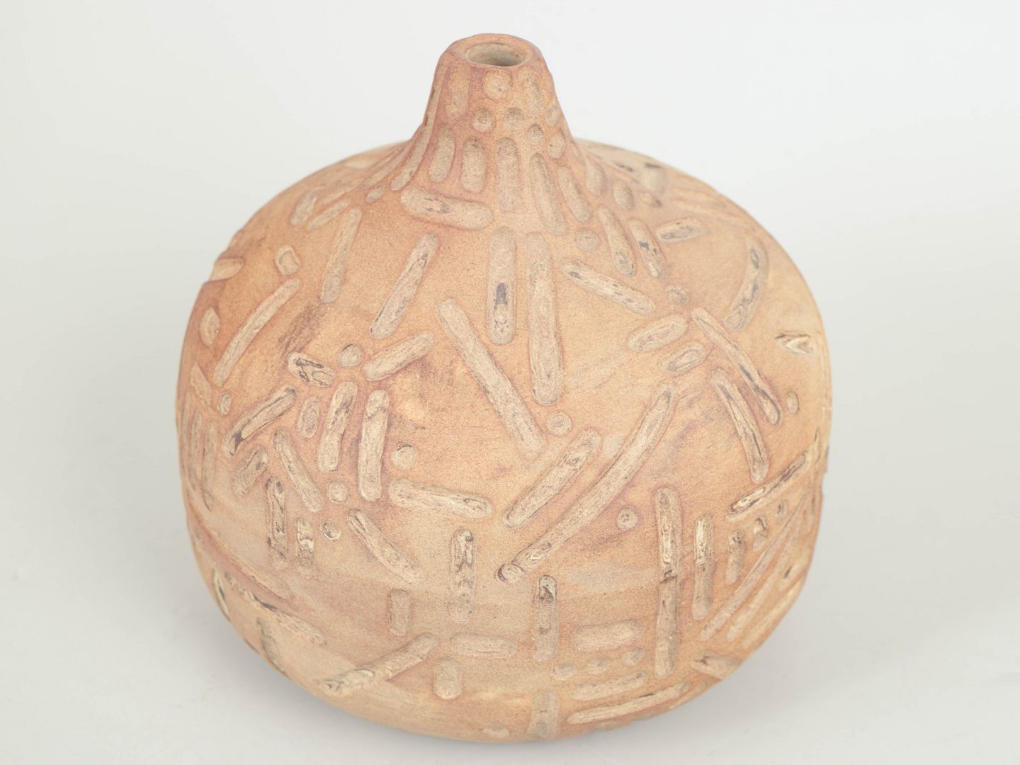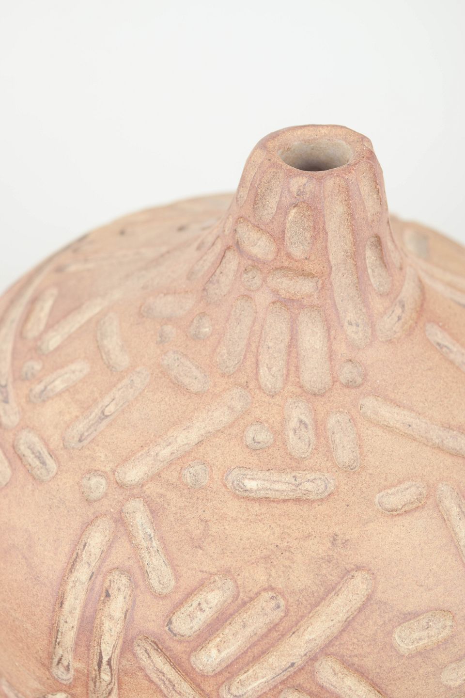 Christina Muff, dansk samtidskeramiker (f. 1971).Unika stentøjsvase, organisk formet. Værket fremstår uglaseret med udskæringer.