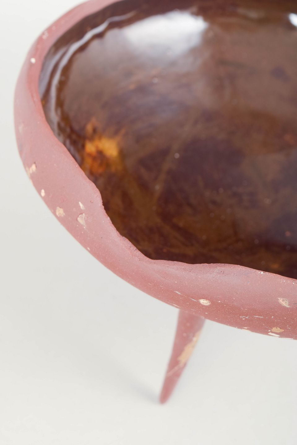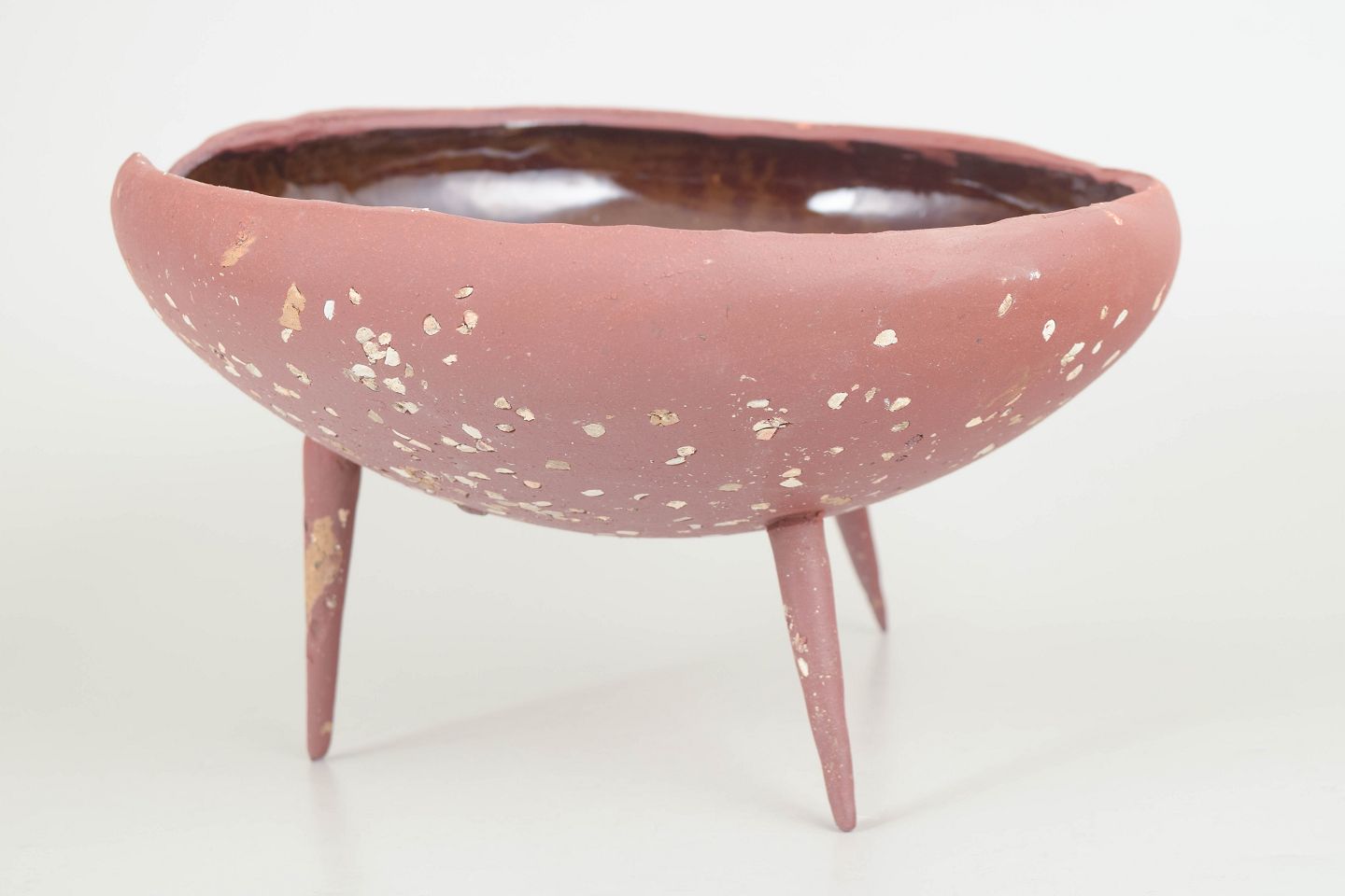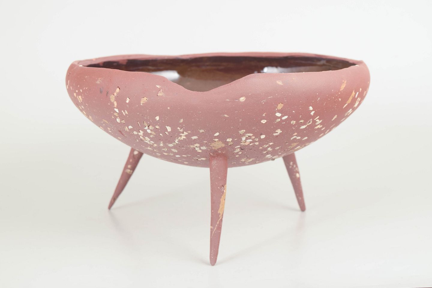 Unika Skål i rødt stentøjsler på tre spidse ben.
