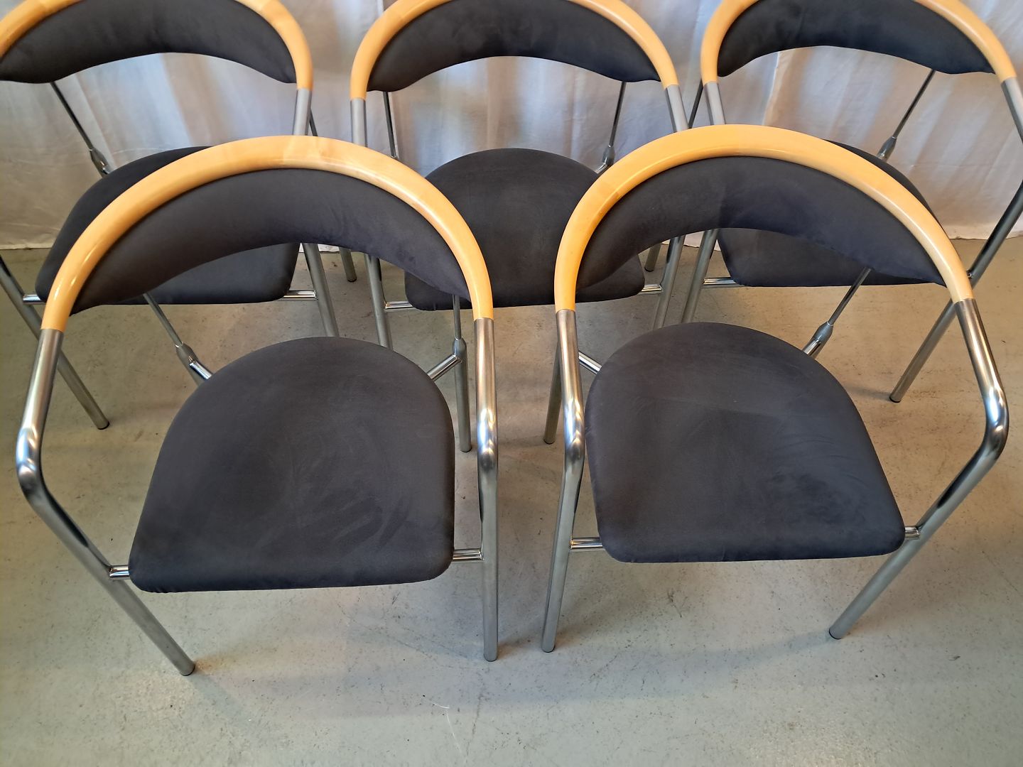 5 Chairman stole af Henrik Tengler i metal med alcantarabetræk, fra 2010erne.De har brugsspor.