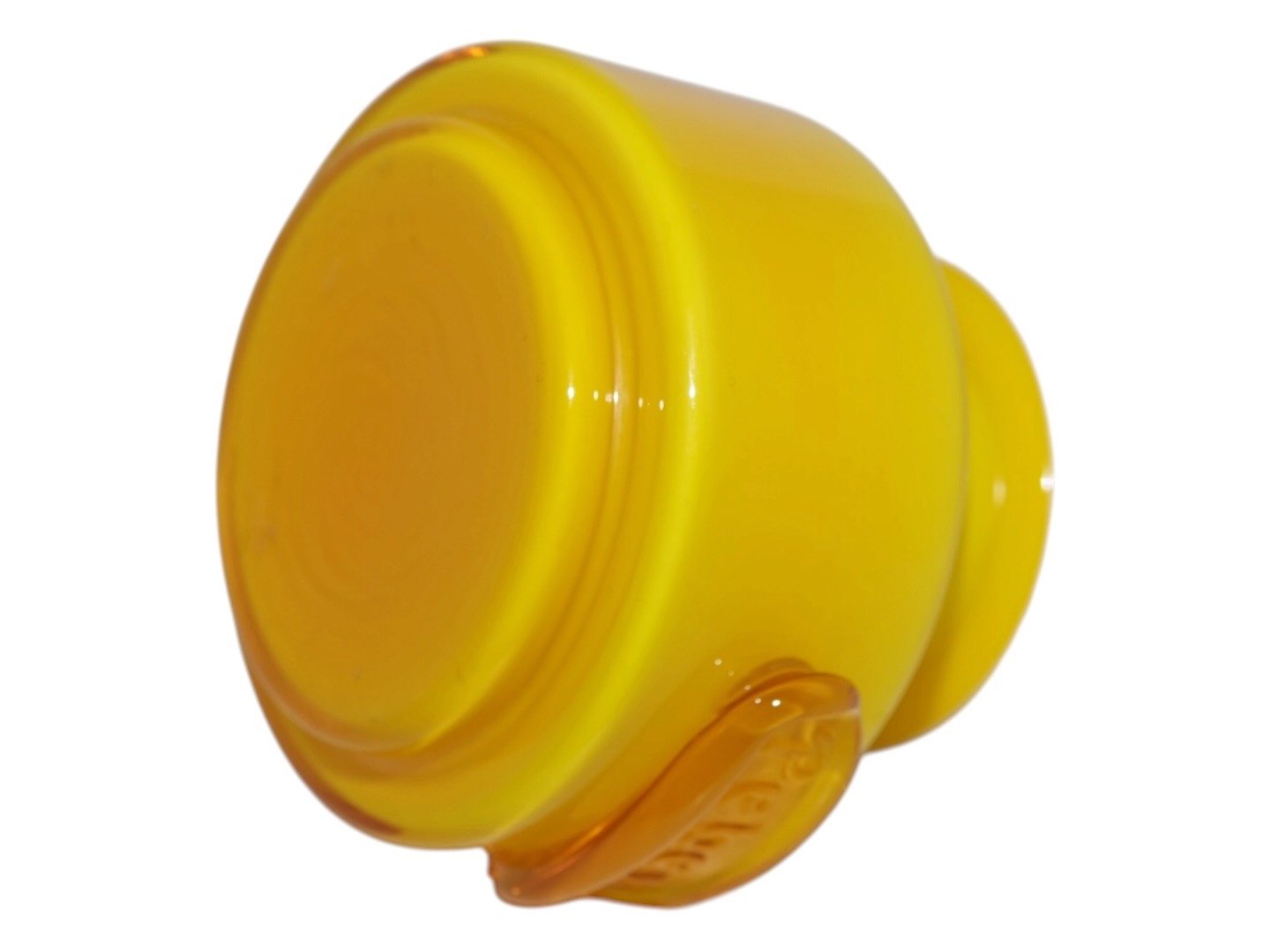 Holmegaard Palet gul krydderikrukke med teksten "Peber".Designet af Michael Bang i 1970.