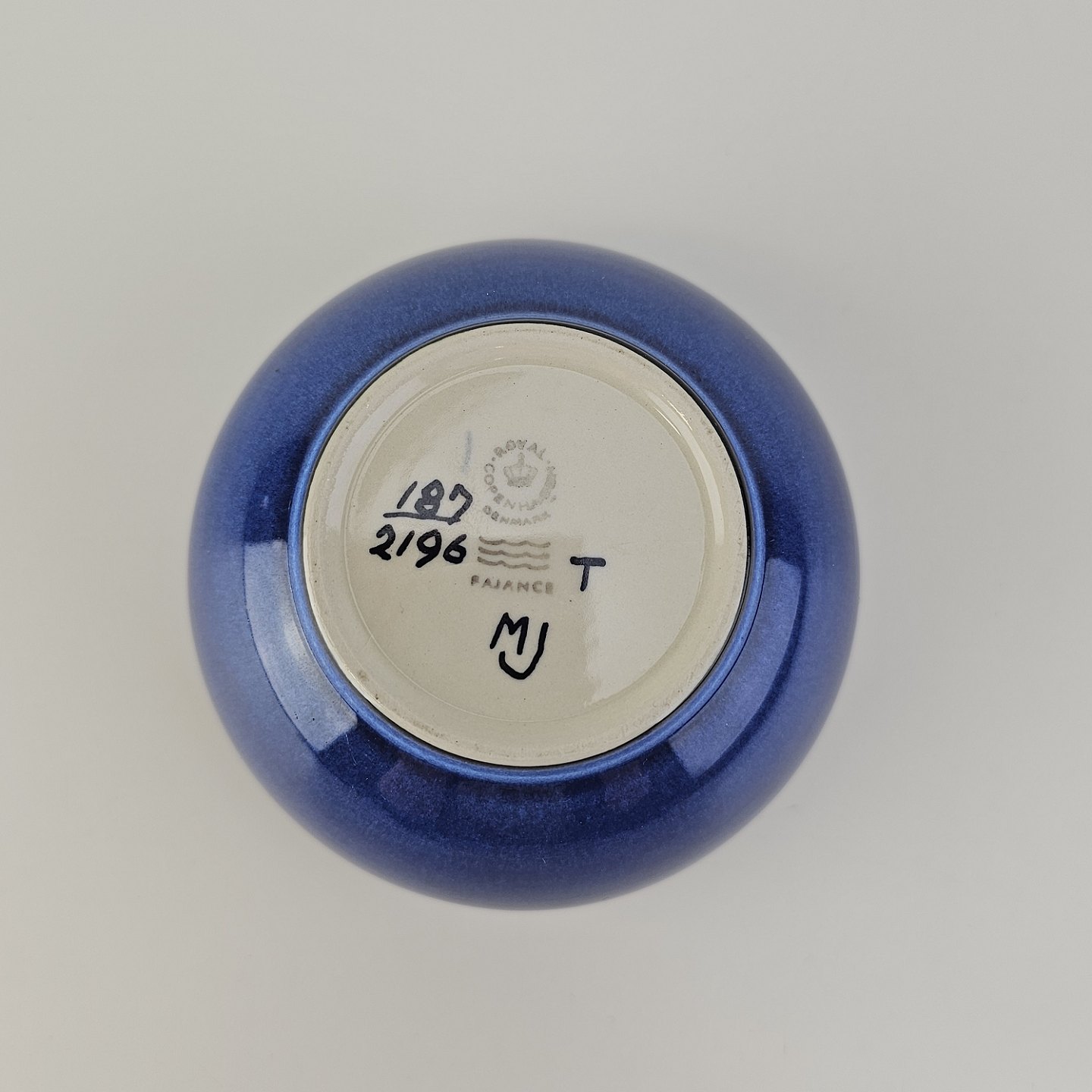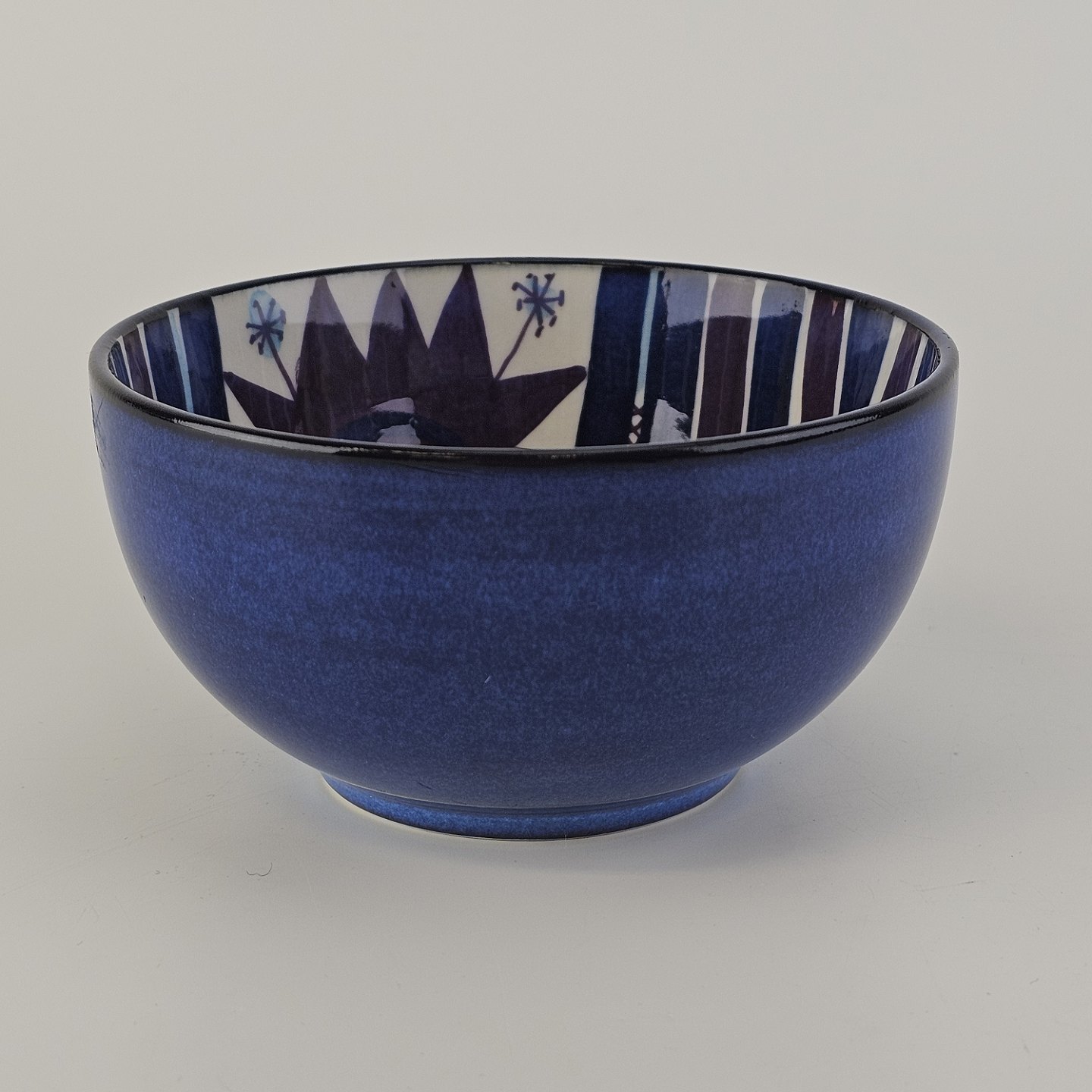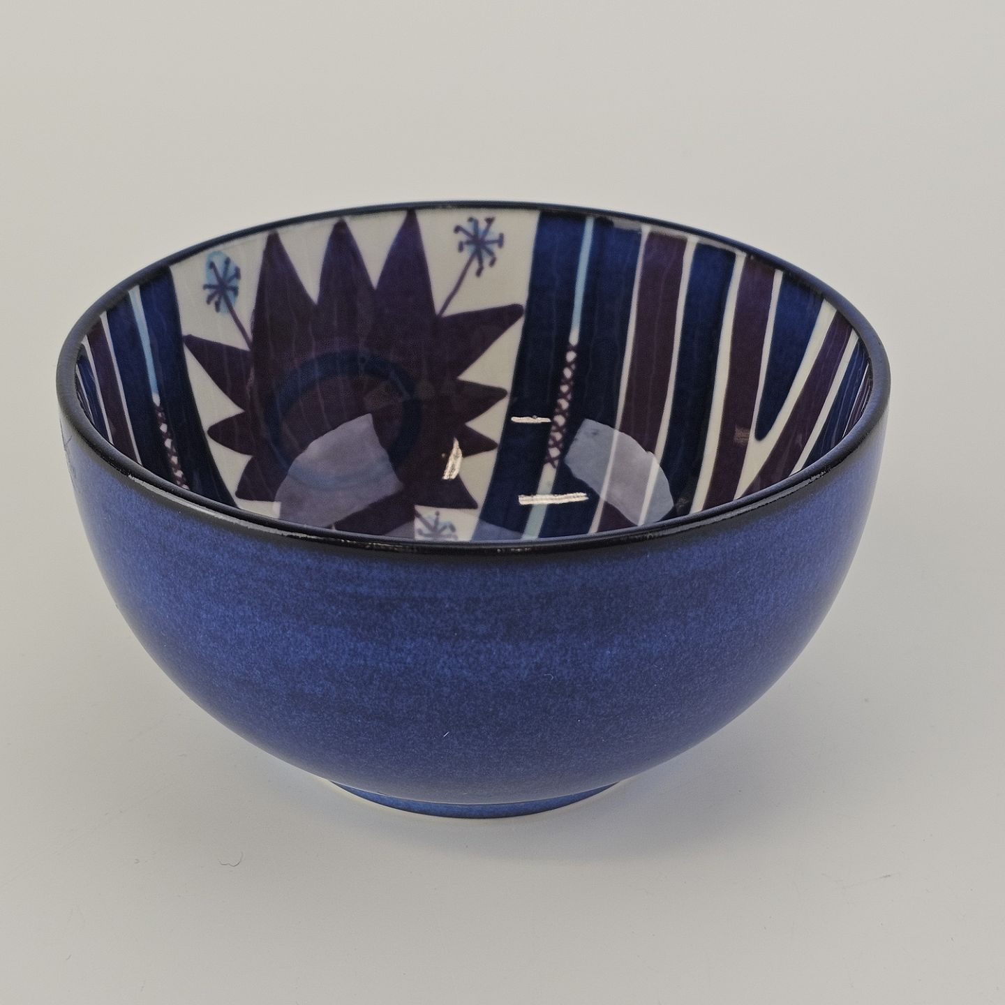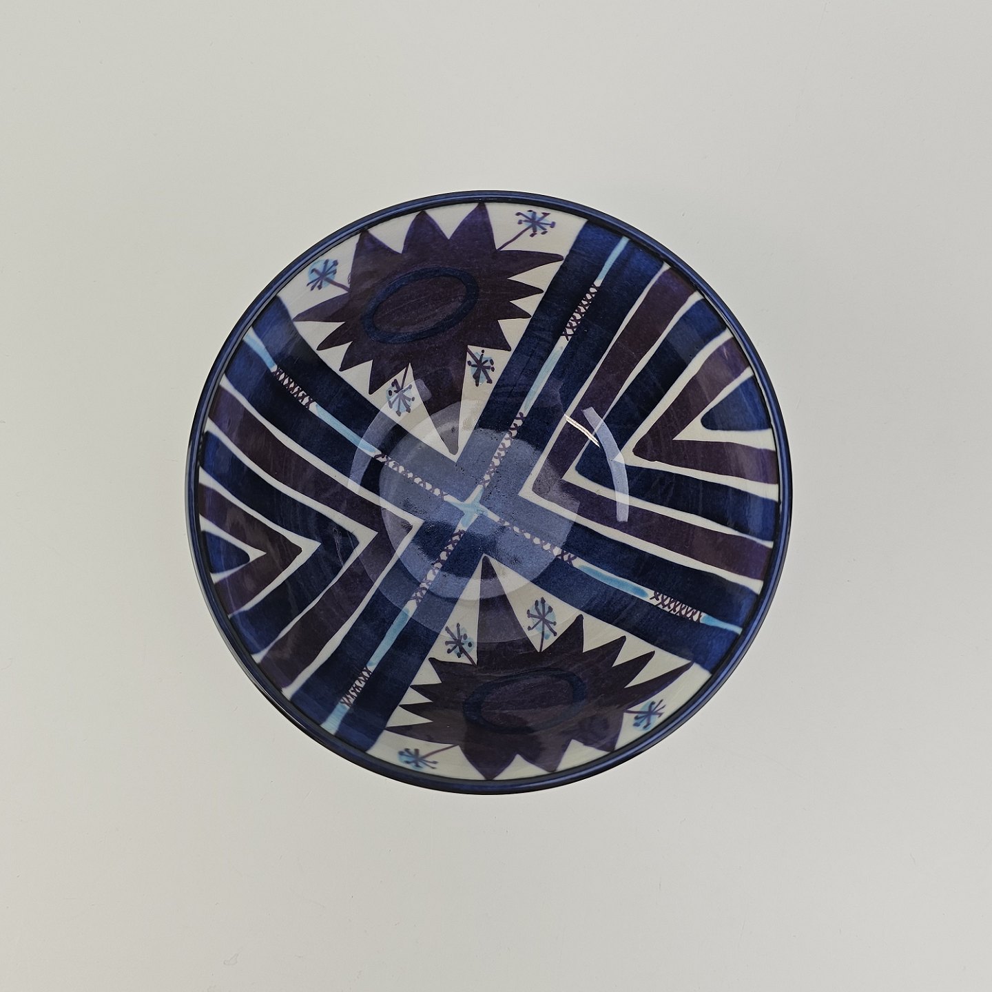 Mørkeblå Tenera skål dekoreret indvendigt med blå farver på hvid baggrundNr. 187/2196