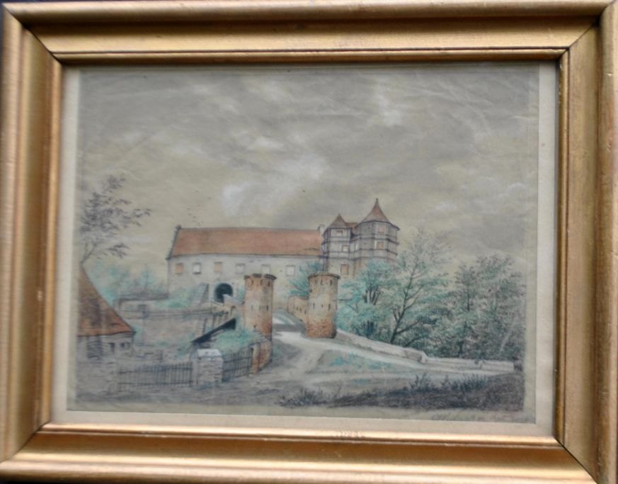 Ubekendt kunstner (19. årh.):En borg. Akvarel. Signeret 1844. 20,5 x 27 cm.Indrammet: 29 x 37,5 cm.