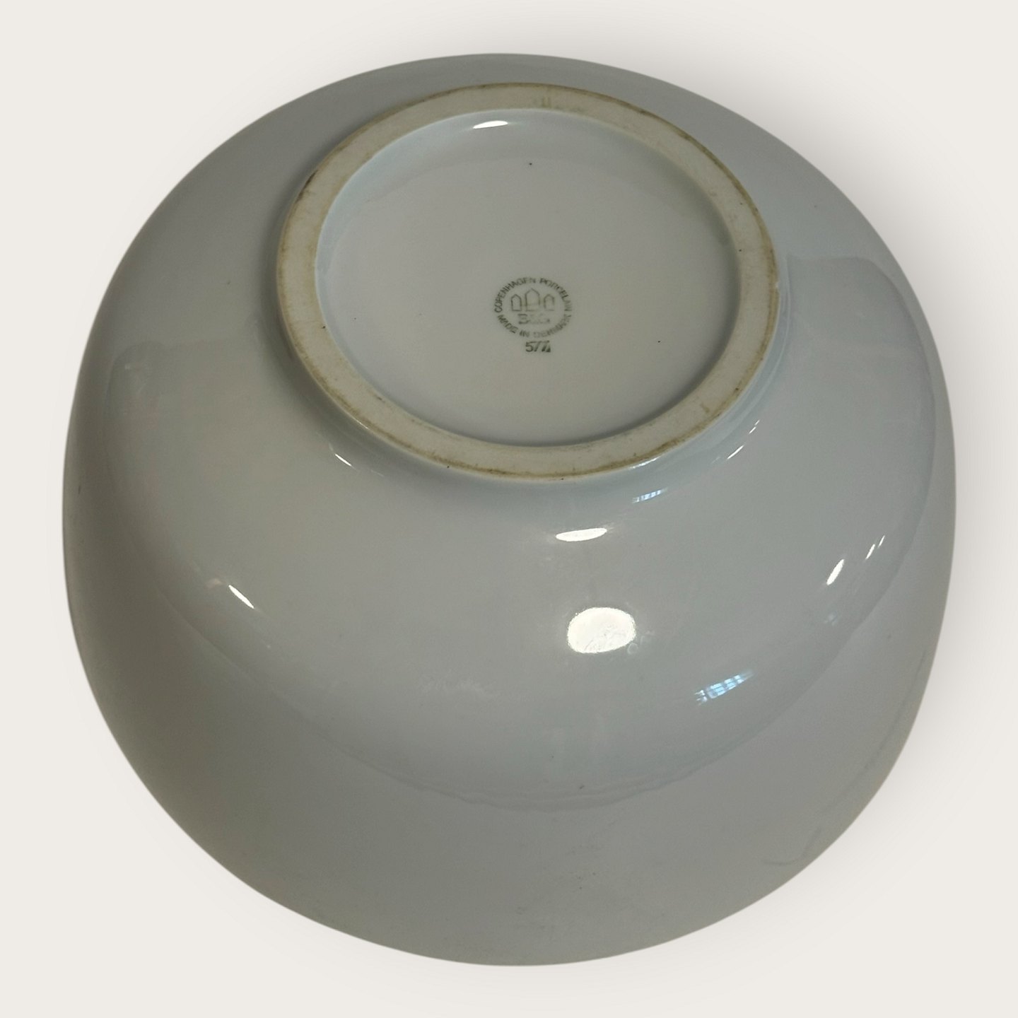 Bing & Grøndahl, Hvid Koppel, Stor serveringsskål, Diameter 22,5cm højde 13cm, Design Henning Koppel *2. sortering p.g.a. en lille fejl på foden af skålen under glasuren ( se foto)*Lager: 1