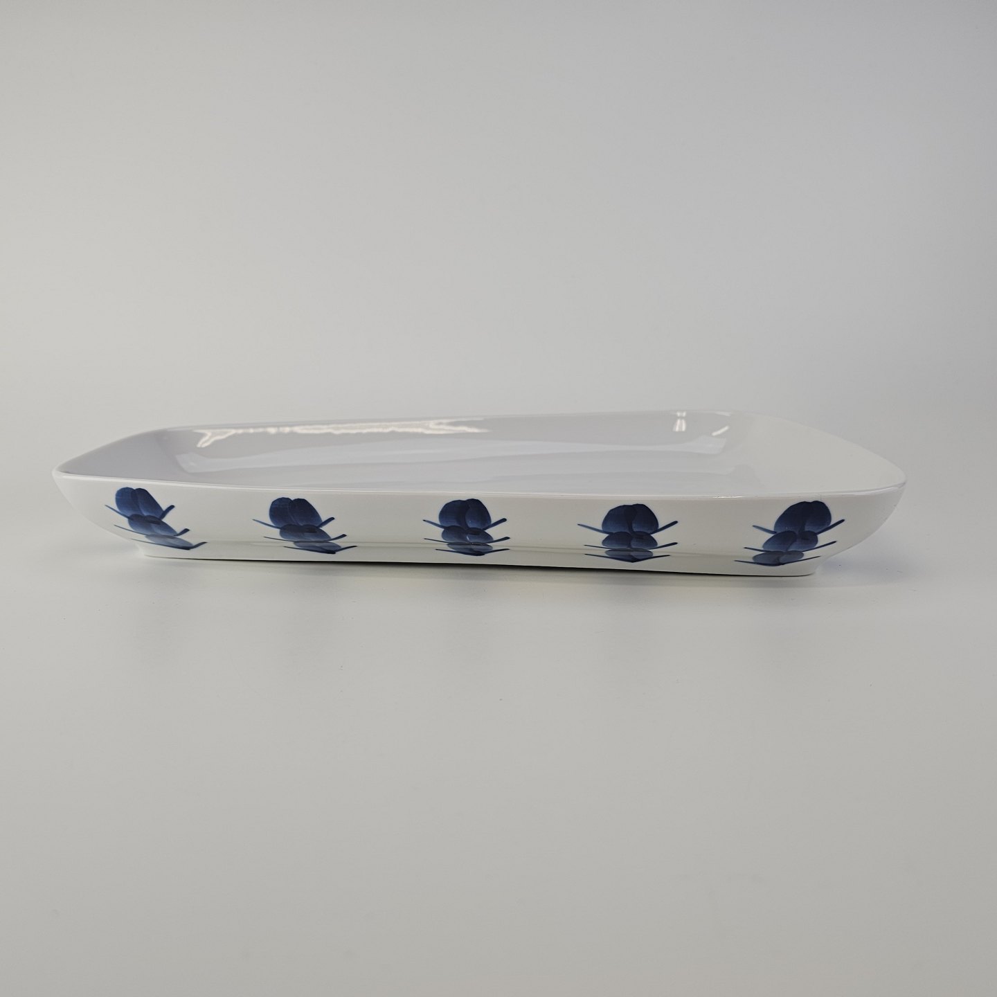 Asymmetrisk aflangt fad i porcelæn fra Stellet Danild 30, også kaldet BlomsterknopProducent Porcelænsfabrik Danmark