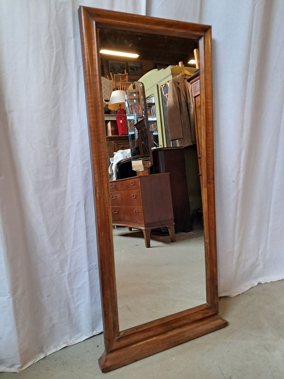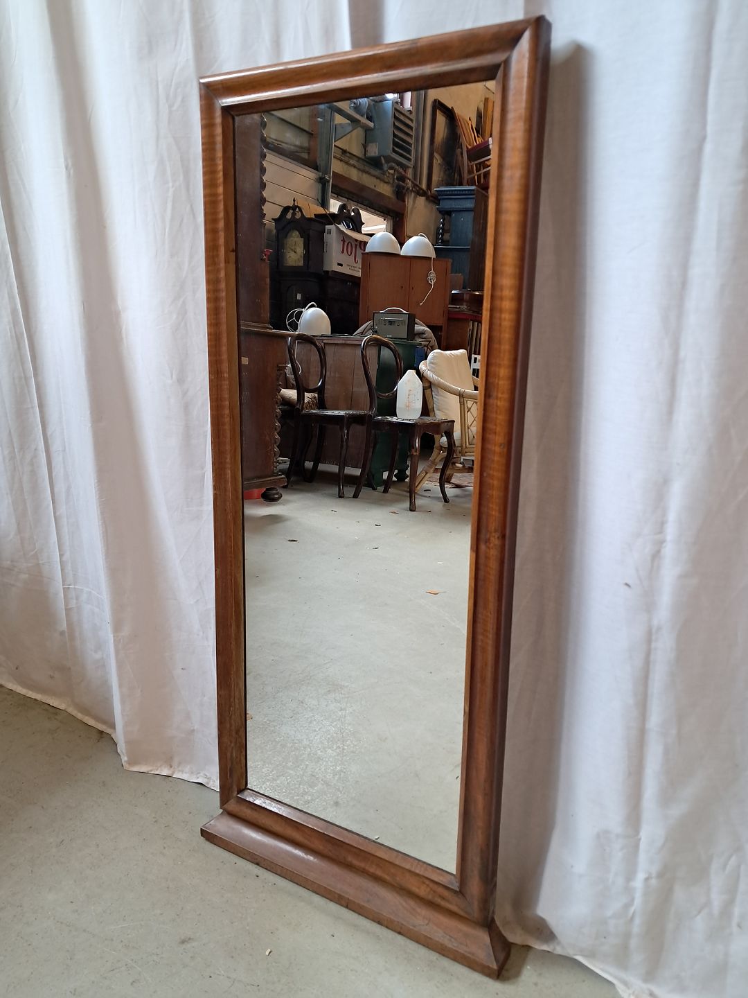 Spejl i fineret mahogni, fra 1900erne.Det har brugsspor.