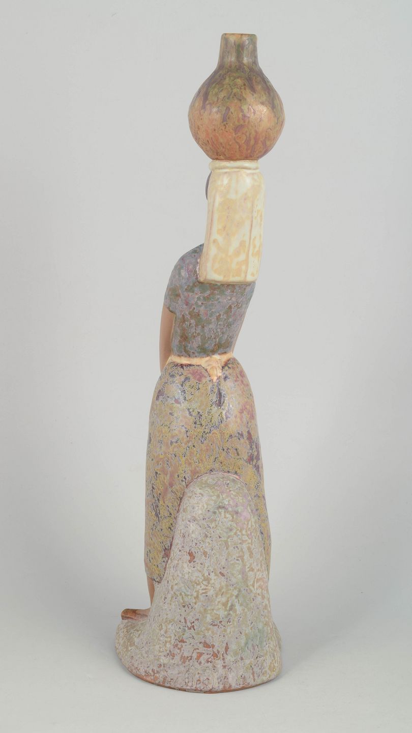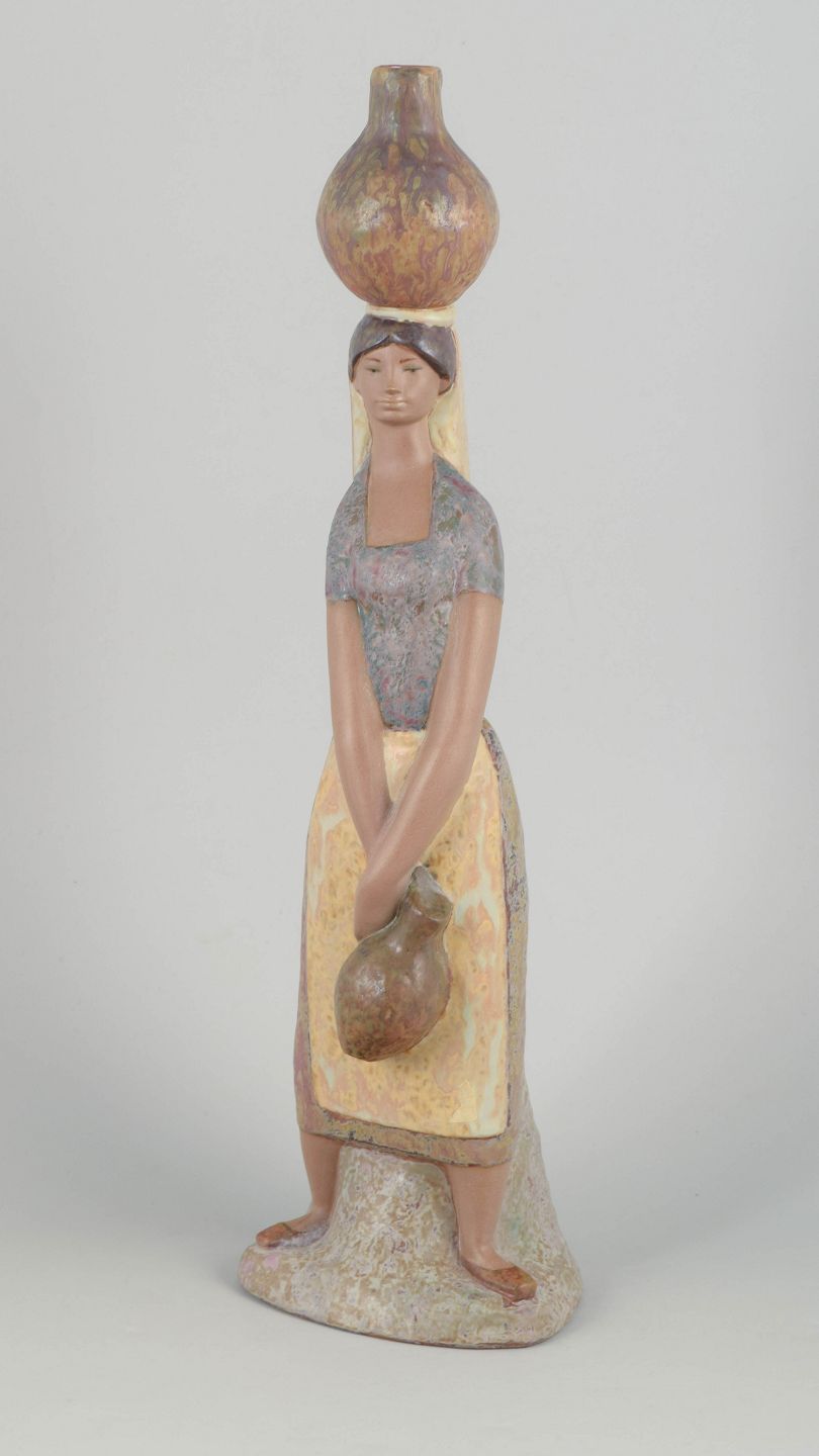 Lladró figur, kvinde med krukker.Stor figur i porcelæn forestillende stående kvinde med to krukker, udført i bløde organiske former og afdæmpede glasurtoner.