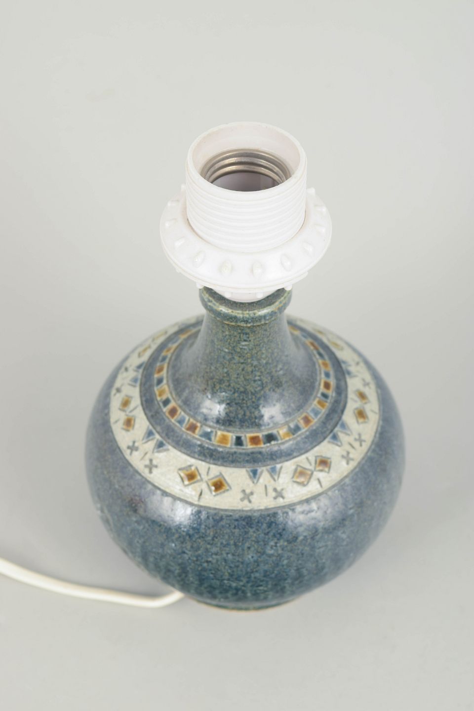 Yngve Blixt for Höganäs, bordlampe.Dekorativ bordlampe i stentøj med karakteristisk reliefmønster og grøn glasur, monteret med lys fatning. Kort ledning uden stik.