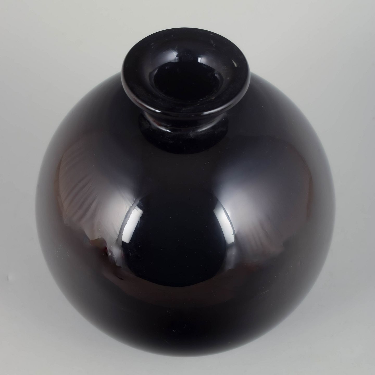 Harald Notini for Pukebergs Glasbruk, vase i cryopa glas.Elegant kugleformet vase med kort hals udført i mørktonet glas med højglans overflade, typisk for art deco perioden.