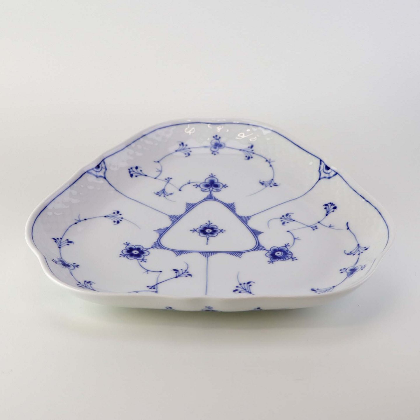 Trekantet kagefad i porcelæn fra stellet Blåmalet. Nr.40Producent Bing & Grøndahl