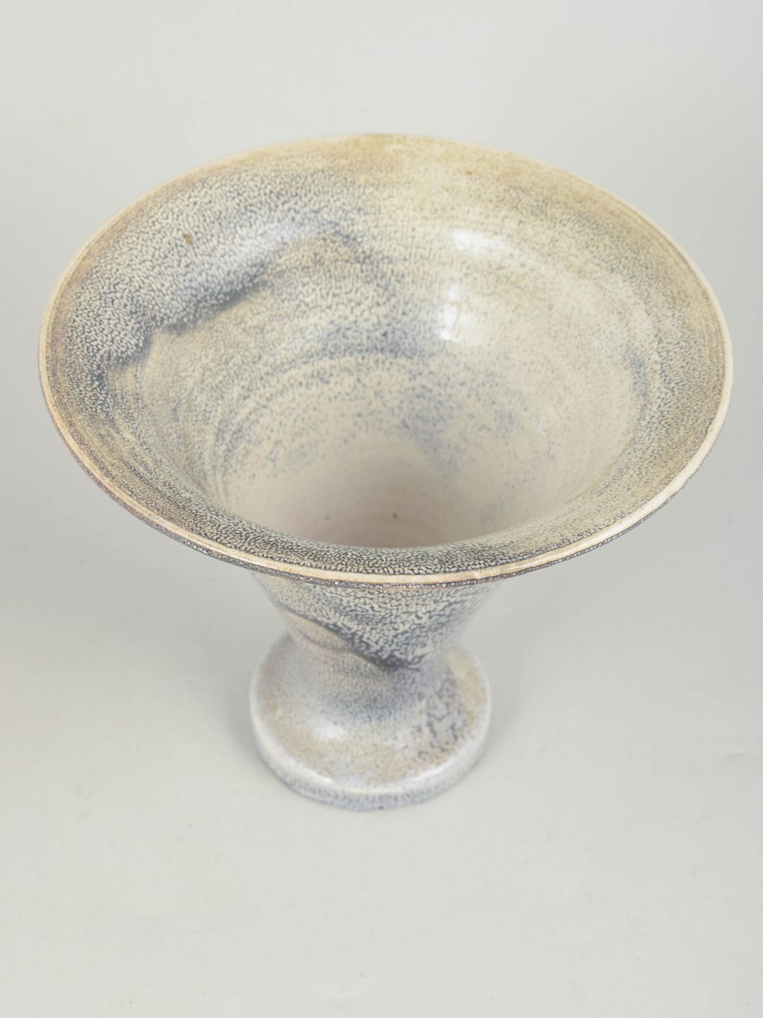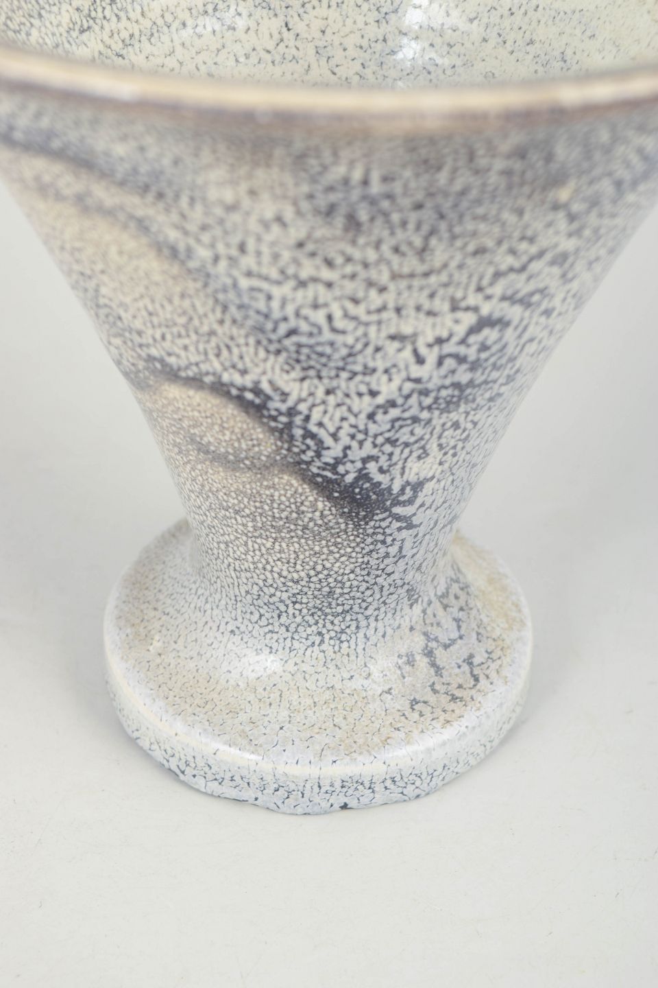 Svend Hammershøi for Kähler, vase i trompetform.Dekorativ vase i stentøj med karakteristisk trompetform og dobbelt glasur i sorte og grå nuancer. Eksempel på Hammershøis sikre formsprog og subtile glasurarbejde fra 1930’erne. Stemplet i bunden.