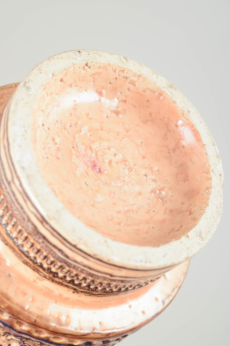 Aldo Londi for Bitossi, vase.Dekorativ stentøjsvase med karakteristisk relief og horisontale bånd i jordfarver og orange nuancer, udført i klassisk italiensk stil fra 1970’erne.