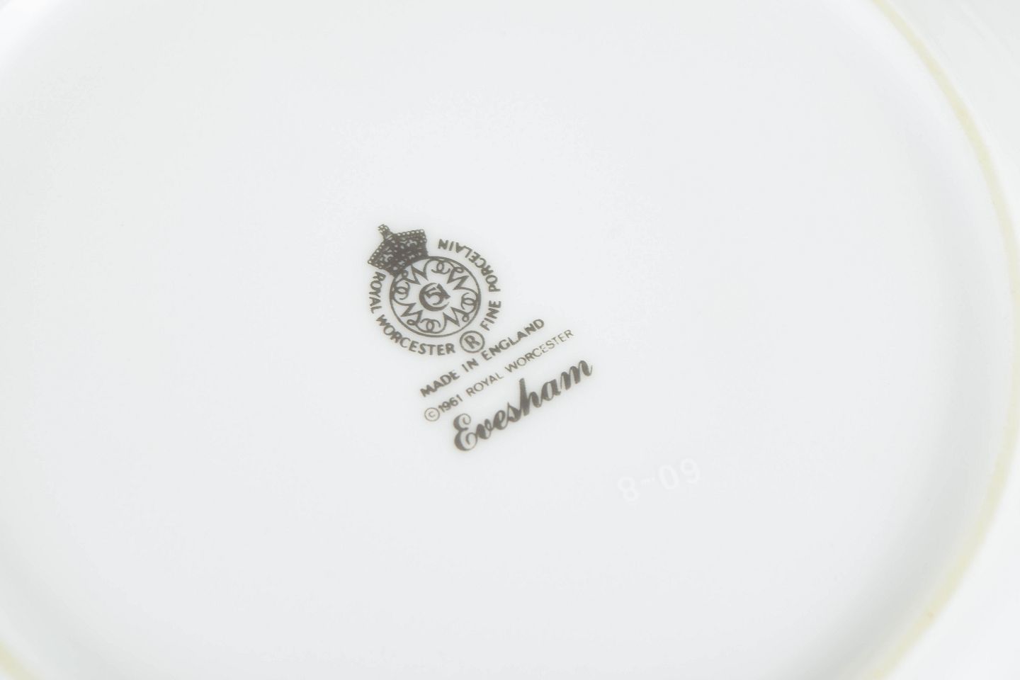 Royal Worcester blev grundlagt i 1751 i Worcester, England, og er en af de ældste porcelænsfabrikker i Europa. Fabrikken er kendt for sin høje kvalitet og sine karakteristiske dekorationer, herunder Evesham-serien, som blev introduceret i midten af det 20. århundrede med naturtro frugtmotiver inspireret af engelske haver.