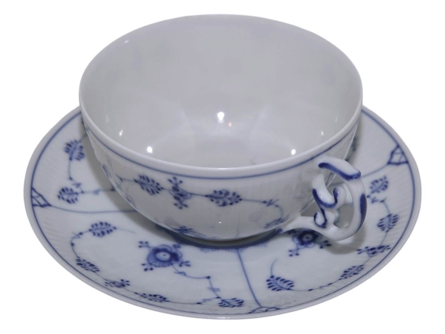 Royal Copenhagen Musselmalet Riflet, ekstra stor tekop også kaldet en kontorkop eller morgenkop.Dekorationsnummer 1/85.