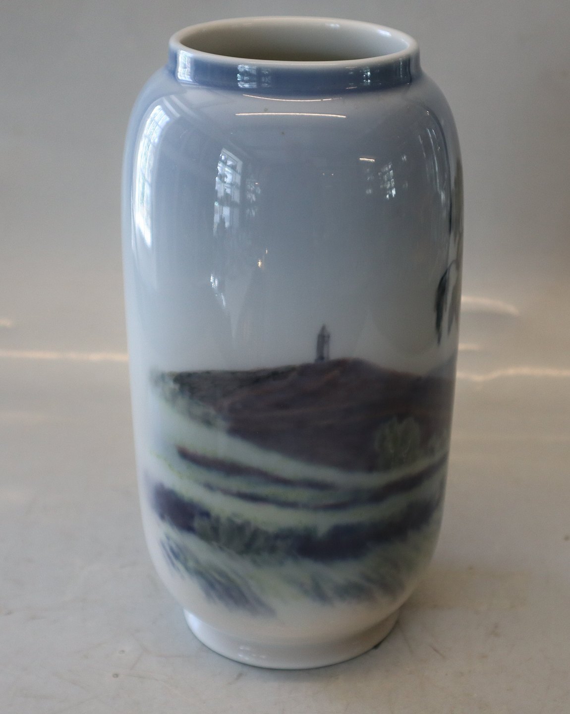 2889-107 Kgl. Vase med tårnet "Himmelbjerget" Silkeborg 21 cm Porcelæn fra Royal Copenhagen I hel og fin standFuglsangsgade 4