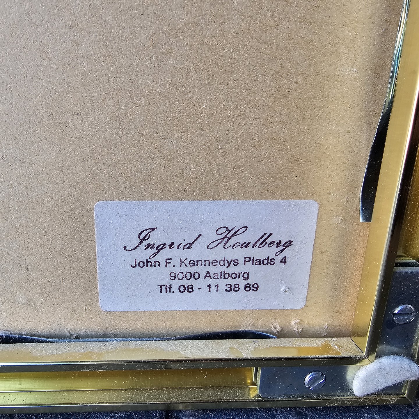 Tryk på papir med motiv af en kvinde i grønne nuancer. Monteret i metalramme, dateret 1981Kunstner Ingrid Houlberg, signeret