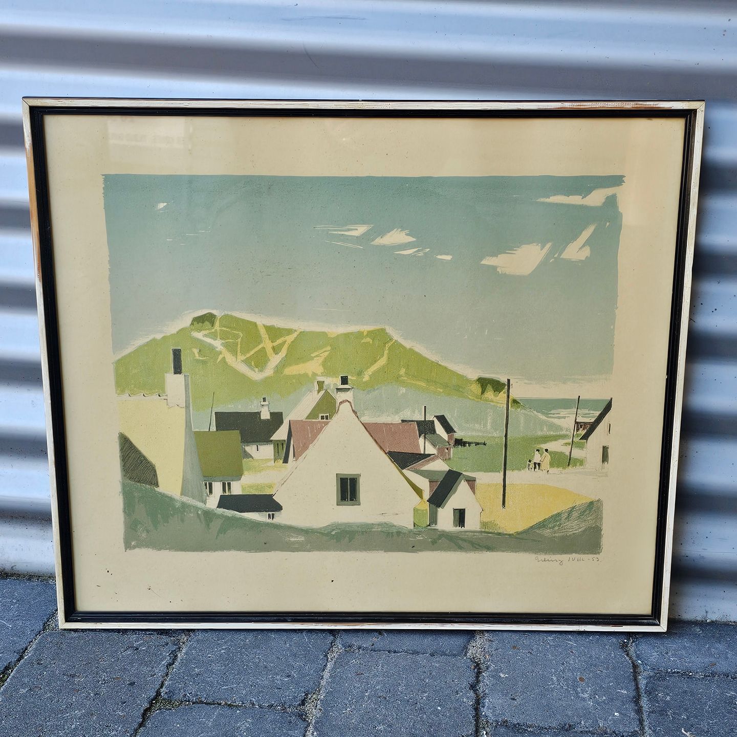 Litografi med titlen Klitter ved Lønstrup med motiv af et dansk sommer landskab monteret i sort og hvid træramme, dateret 1953Kunstner Erling Juhl (1922-1989), signeret
