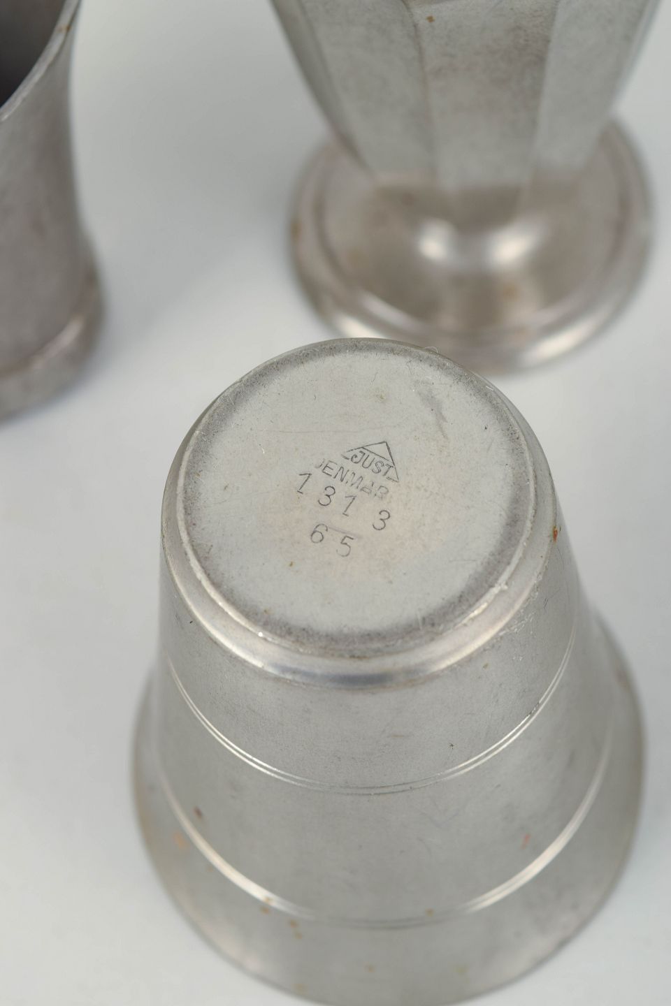 Just Andersen, set of three small vases in pewter.Three small vases in pewter, executed in varied and elegant art deco designs. Models 2549, 1313 and 1123.