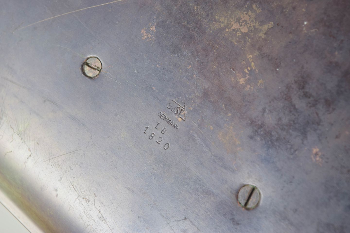 Just Andersen, art deco blækhus.Blækhus i legeret bronze med rektangulær bakke, kvadratisk beholder med låg og original glasindsats. Model LB 1820.