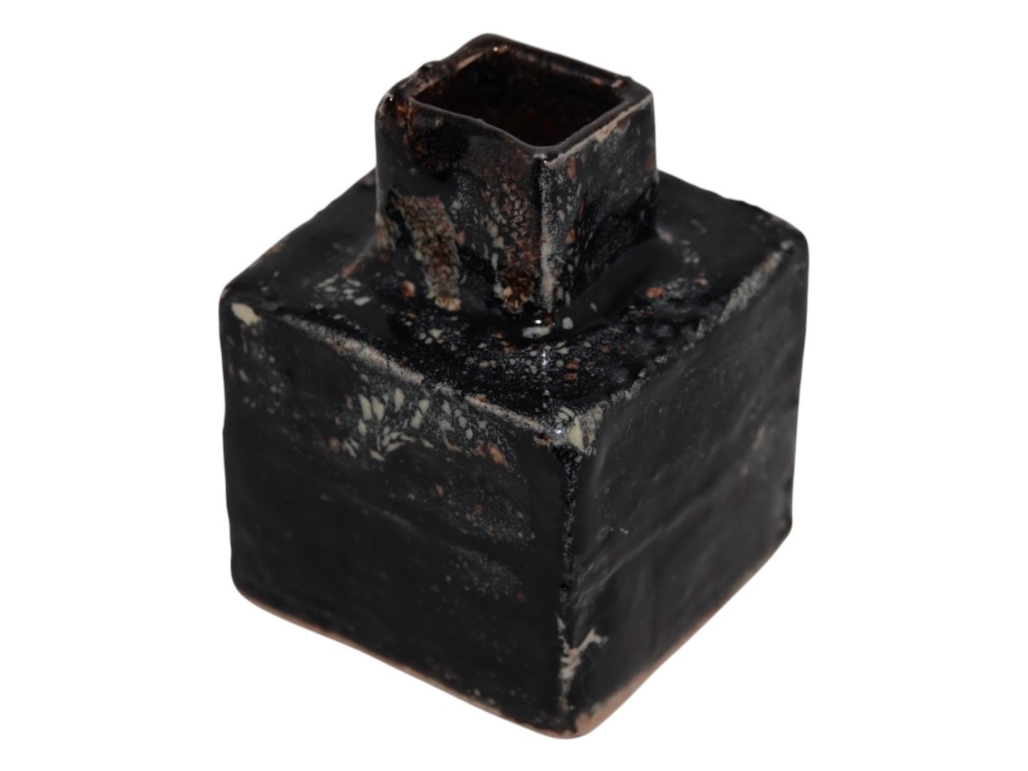 Bente Skjøttgaard keramik, firkantet miniature vase med sort glasur.Mærket med nummer 79.