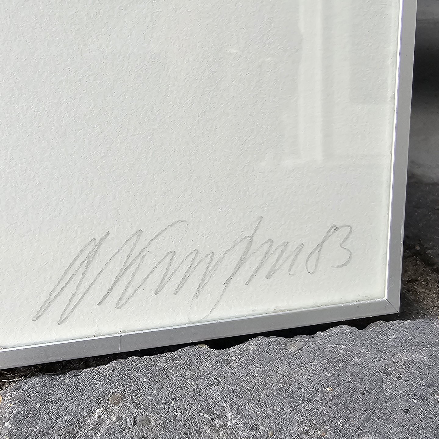 Litografi med motiv af lyserøde blomster monteret i metal rammeNr. 101/250