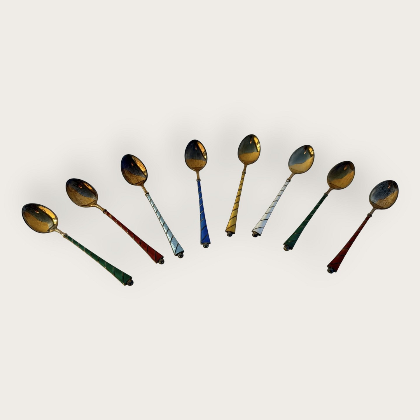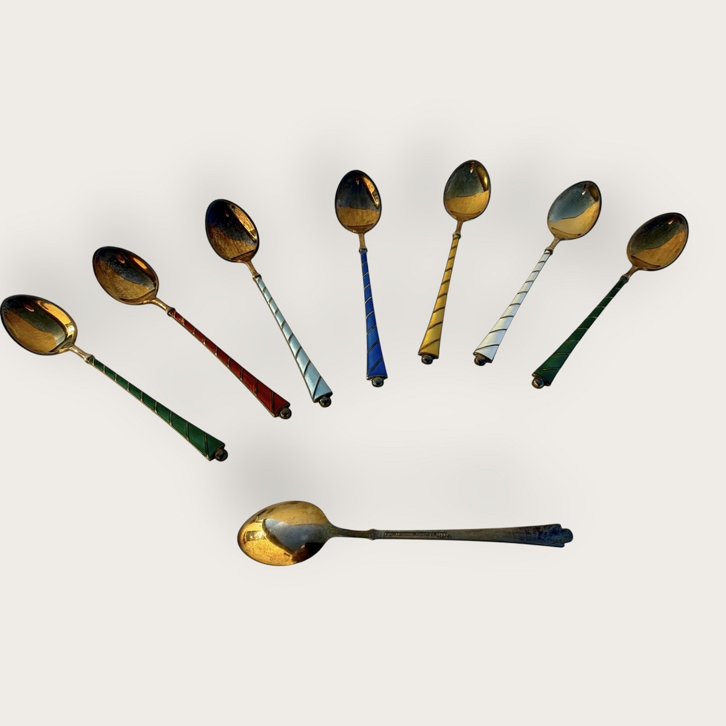 Teskeer, Emalje og forgyldt sterling sølv, Stemplet: Ela Sterling 925S, for Egon Lauridsen, 9,5cm lang *Pæn stand*Lager: 1