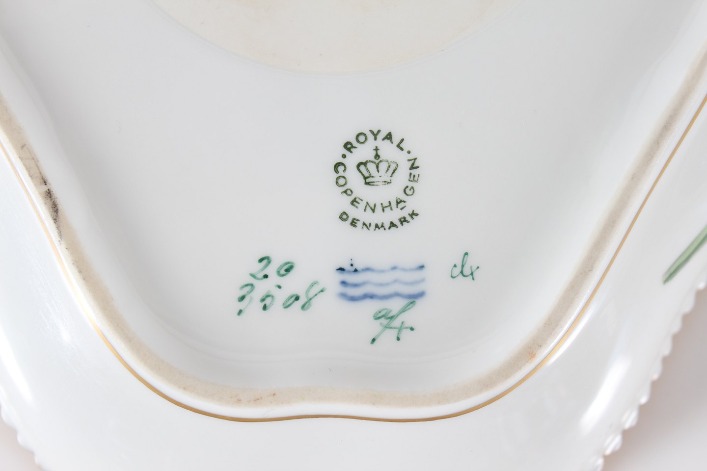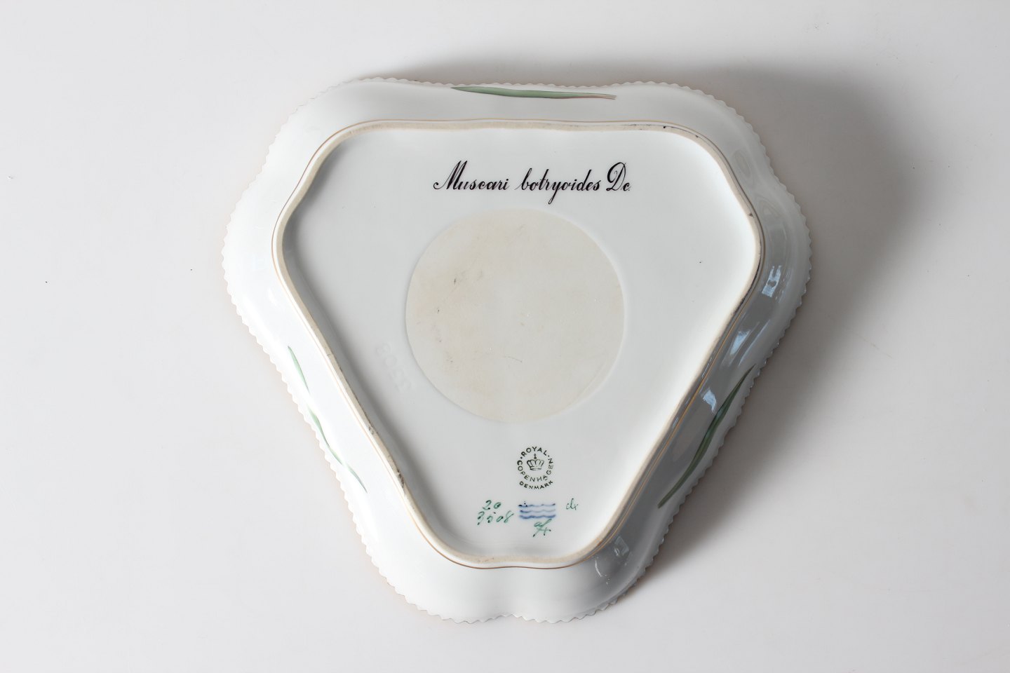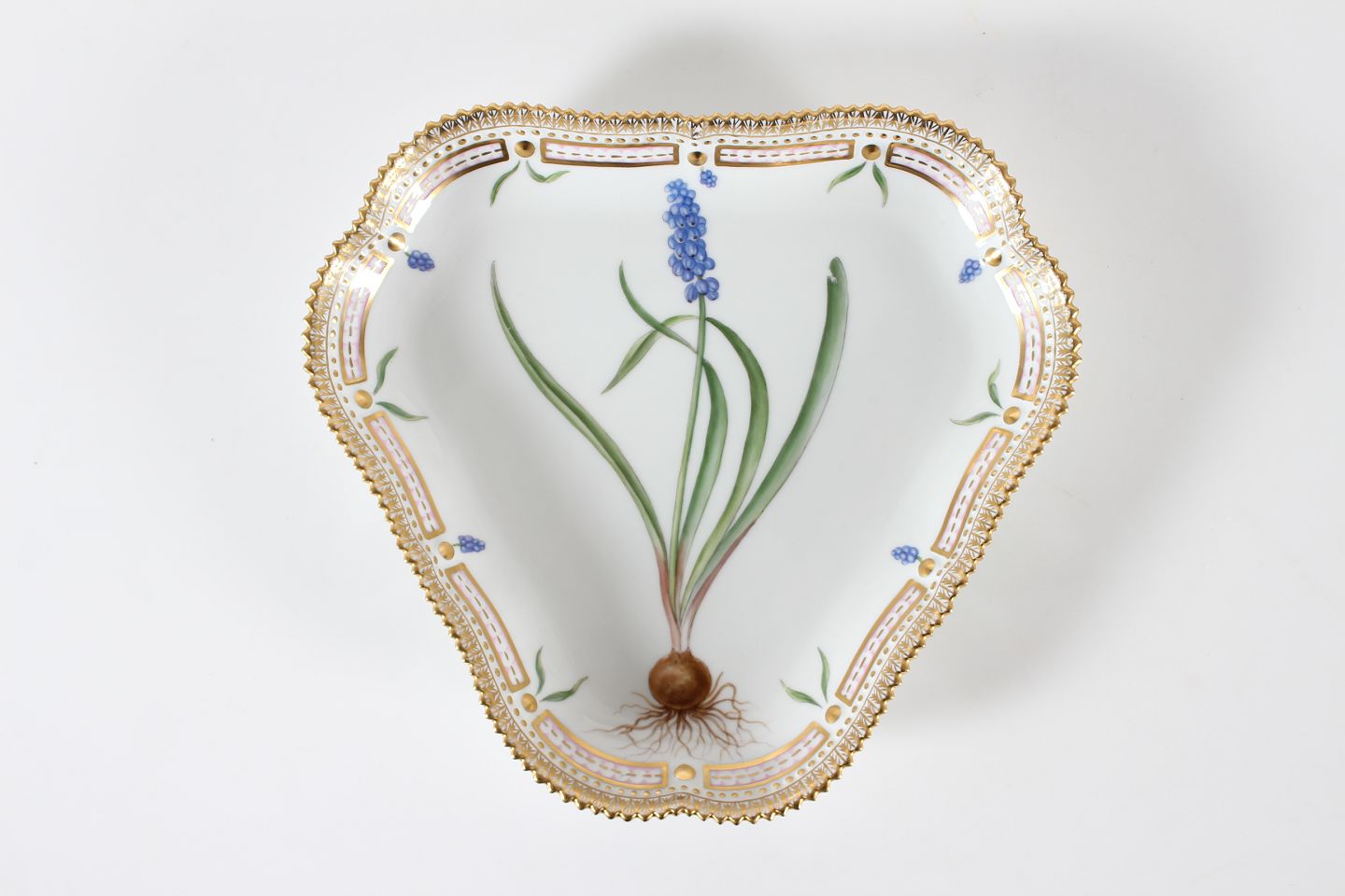 Royal Copenhagen Flora DanicaLav trekantet skål 20/3508 dekoreret med blomster
