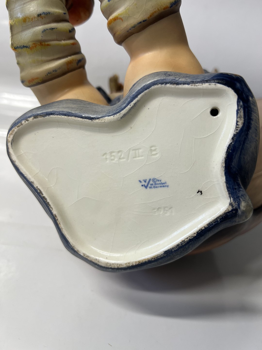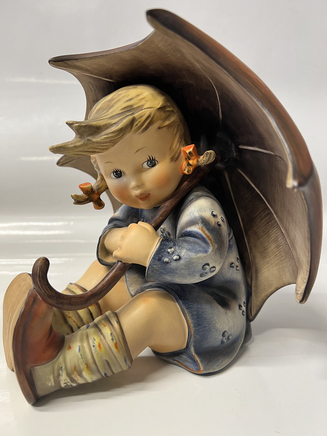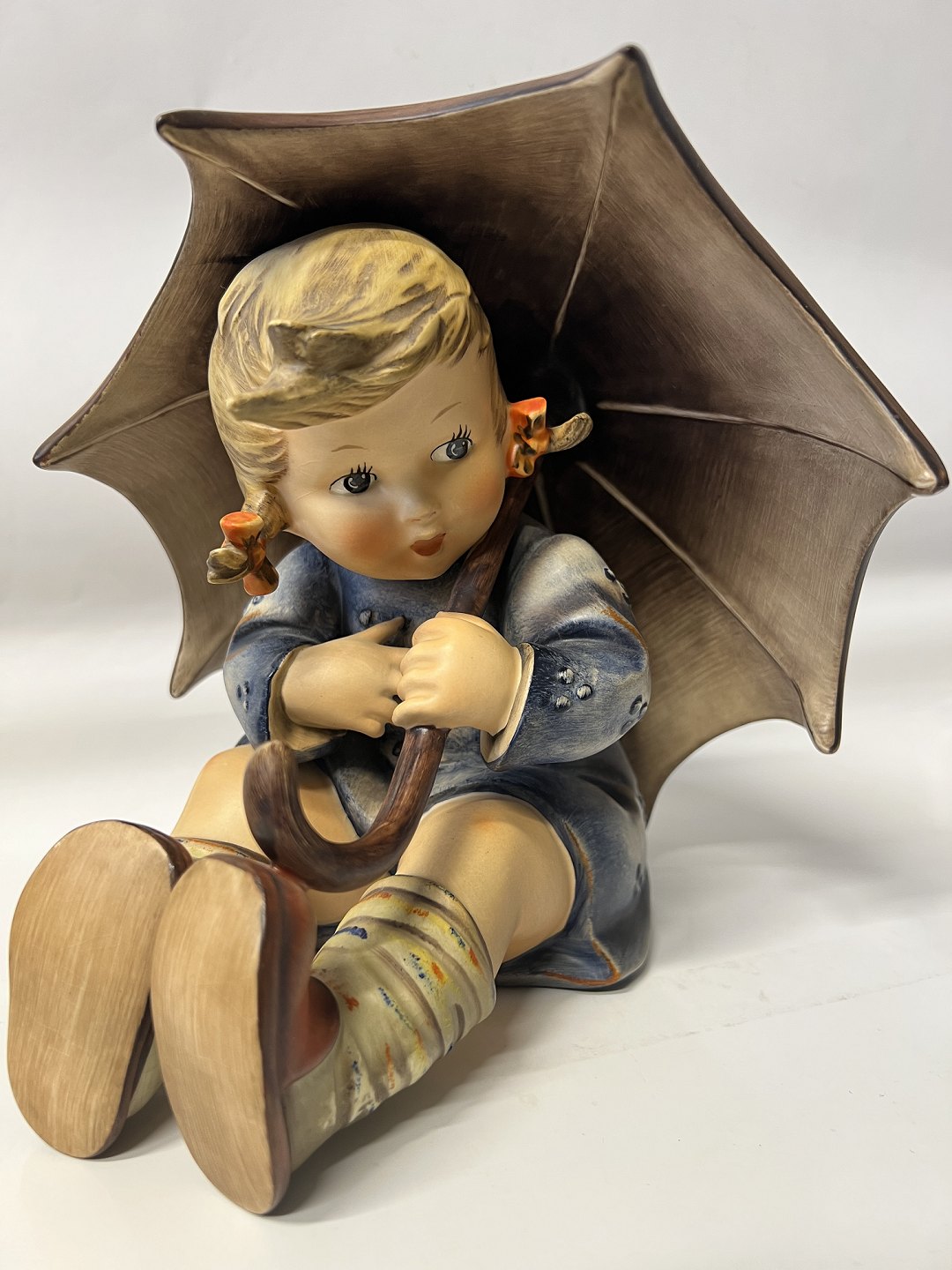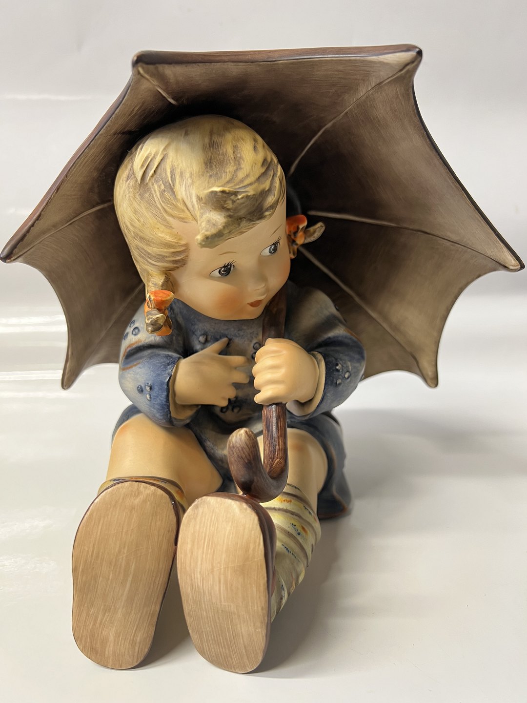 Hummel / Goebel figur: Siddende pige med paraply.Dekorationsnummer 152 B.
