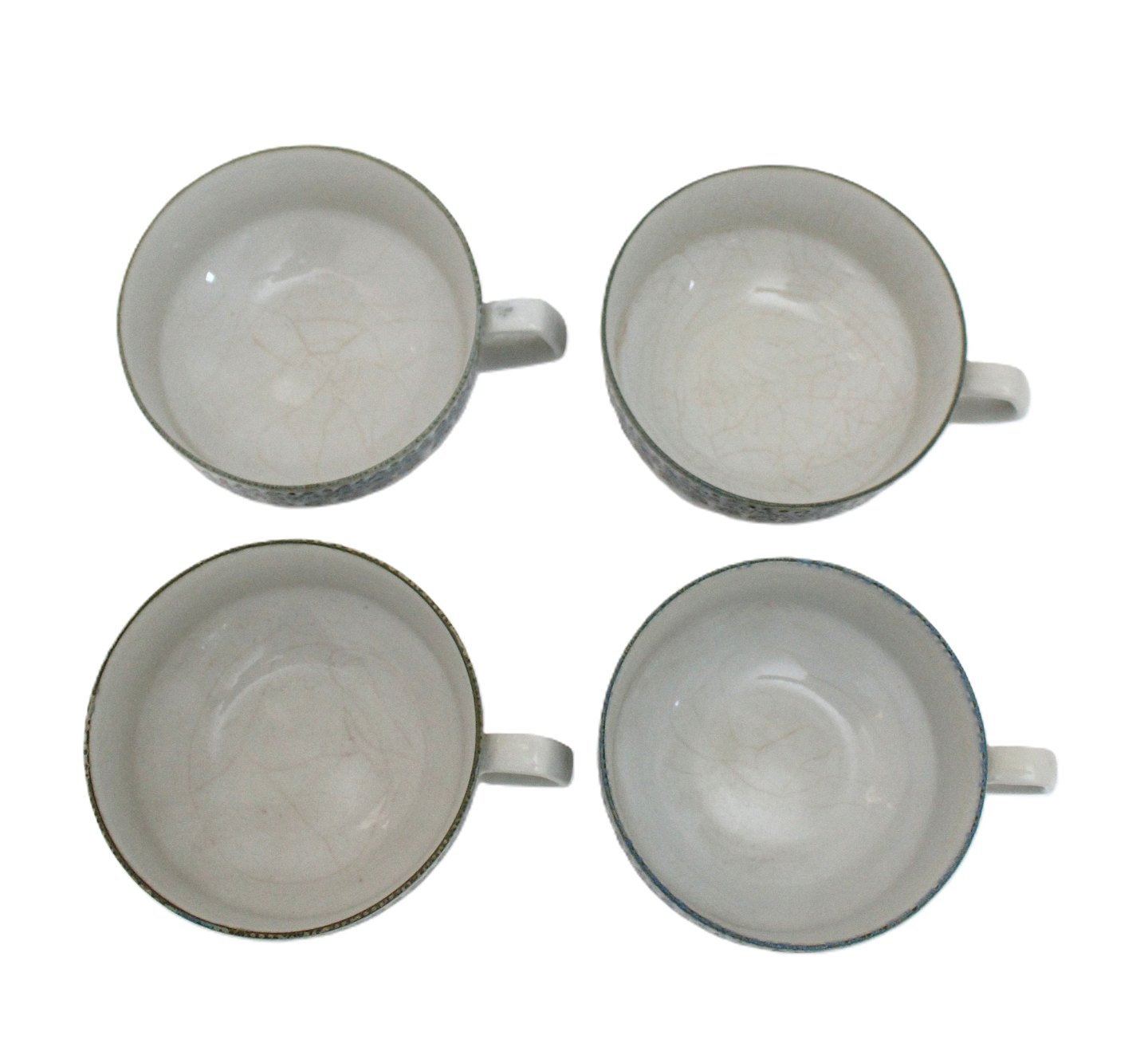 Aluminia, Berte, Tekop med underkop. Designet af Berte Jessen. Produceret i perioden 1962-66. OBS: Krakeleringer på alle dele, kop, underkop og kagetallerken. Ingen skår.Tekop. Nr. 540/2824. Diameter 11 cm. Højde 5,5 cm. Underkop. Diameter 16 cm. Pris: 200 kr. stk. Lager: 5