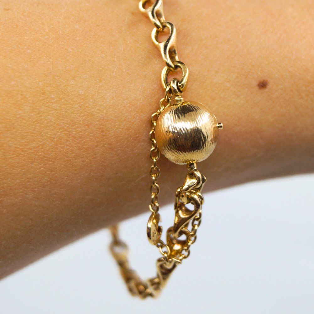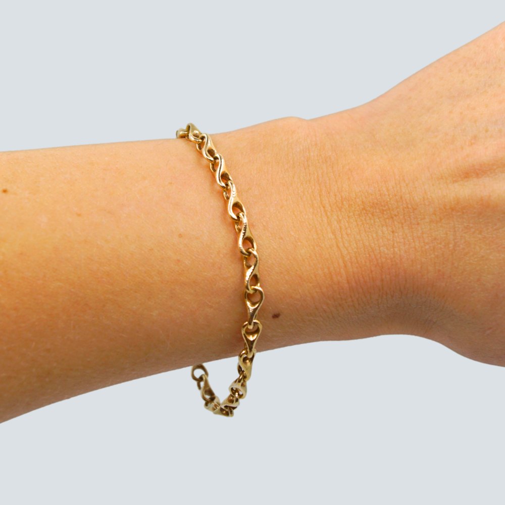 Ole Lynggaard guld smykke.Ole Lynggaard 8-tals armbånd af 14 kt. guld. model med smal kæde. Inklusiv kuglelås i 14 kt. guld. Armbåndet er med sikkerhedskæde.