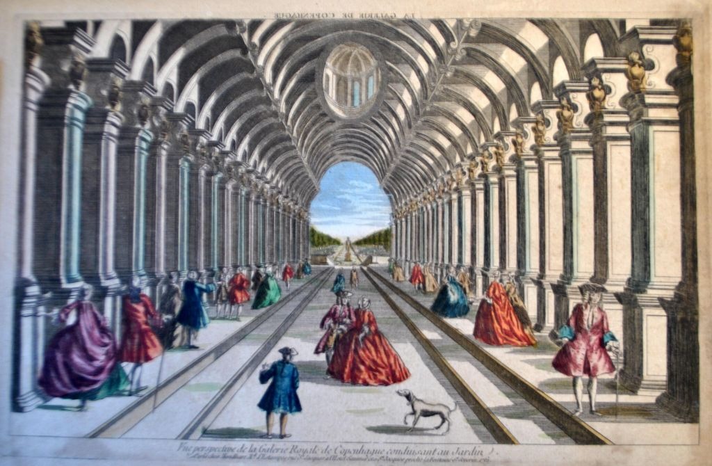 Probst, Georg Balthasar (1673 - 1747) Tyskland: Det kongelige Galleri, Danmark. Håndkoloreret kobberstik. 27 x 38 cm.Uindrammet.