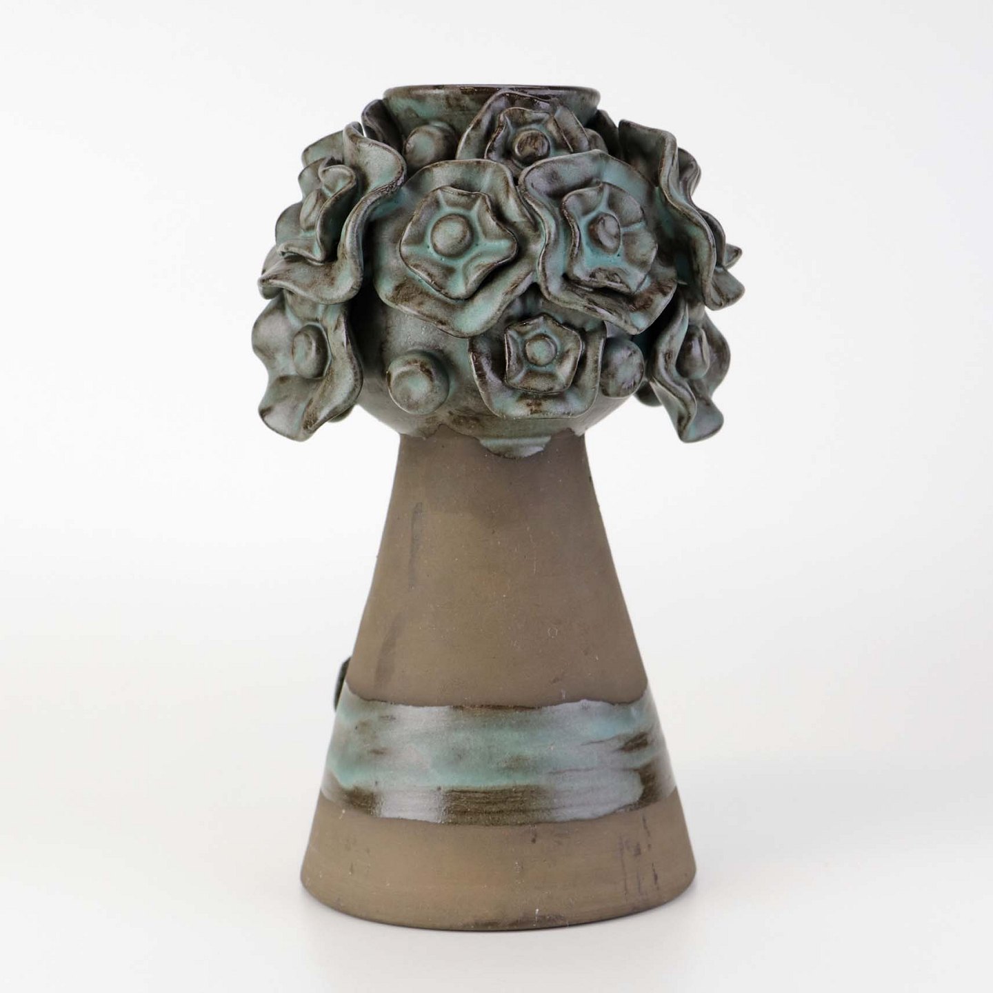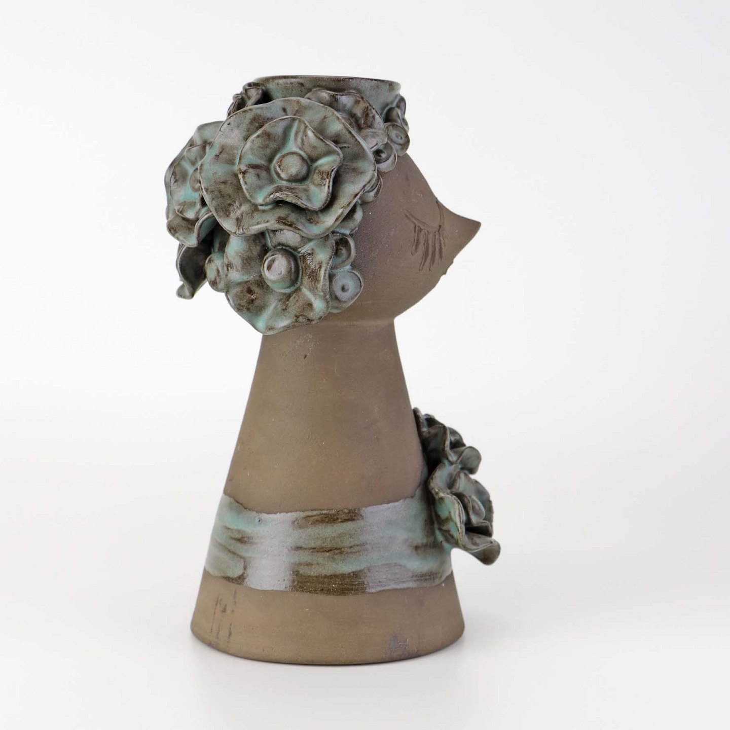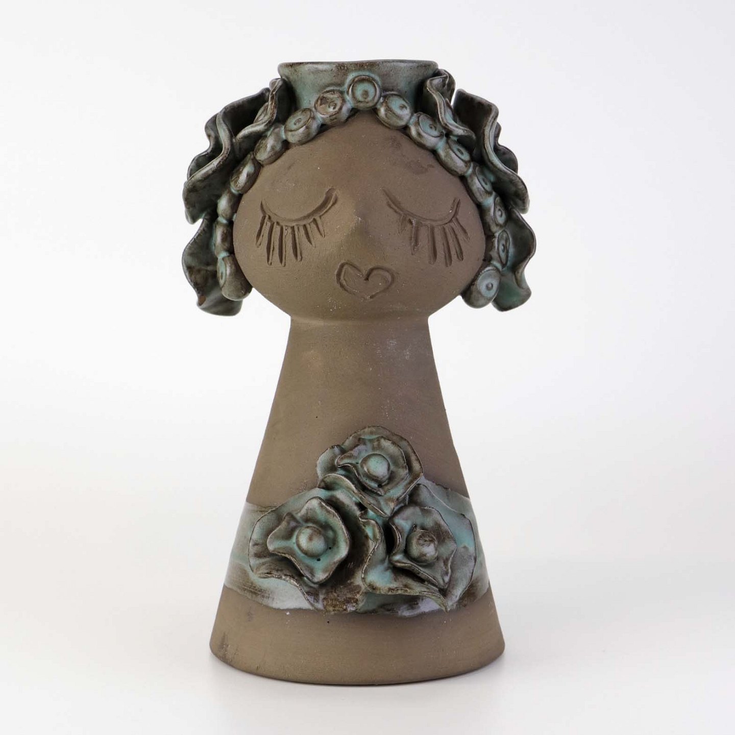Vase i delvist glaseret keramik med motiv af Thurøpige med grønlig glasur.Producent Flemming Ross