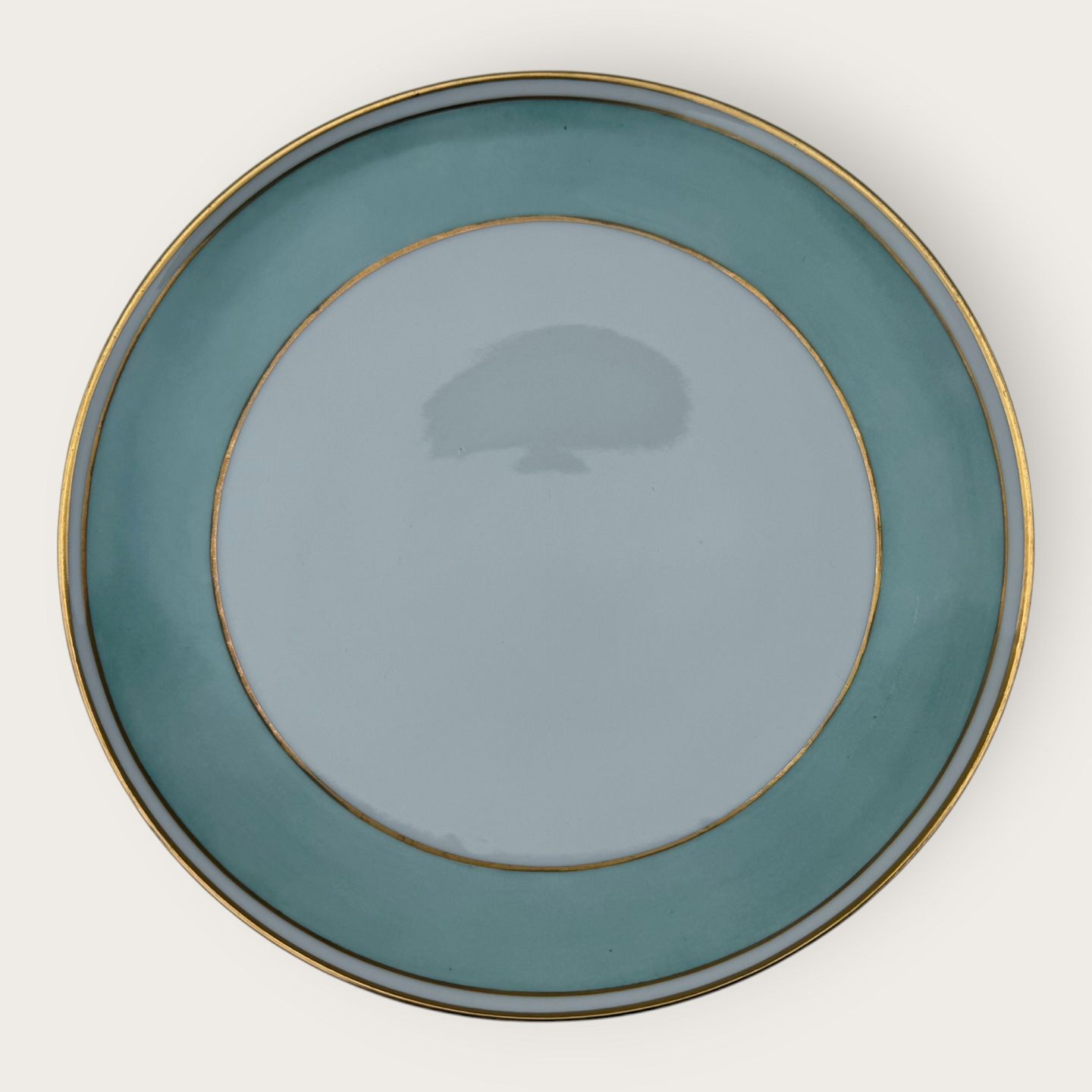 Bing & Grøndahl, Form 643 med bred turkis dekoration og guldkant, Middagstallerken, diameter 23,5cm, 1. sortering, *pæn stand*Lager: 10