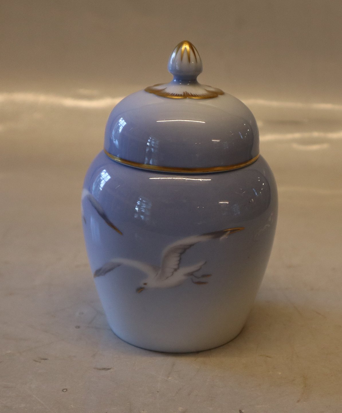 1 stk på lager 1. sort172 Marmeladekrukke med låg 13 cm Bing & Grøndahl Mågestel med guldkant. I hel og fin stand