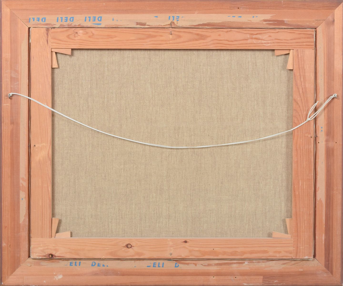 Sally Brandt, oliemaleri på lærred, skandinavisk billedkunstner.Modernistisk stilleben med frugt og glas opstillet i et roligt interiør, udført i en afdæmpet farvepalette med geometrisk opbygning. Kompositionen balancerer mellem figurativ gengivelse og stiliseret formsprog, signeret og dateret 1977.
