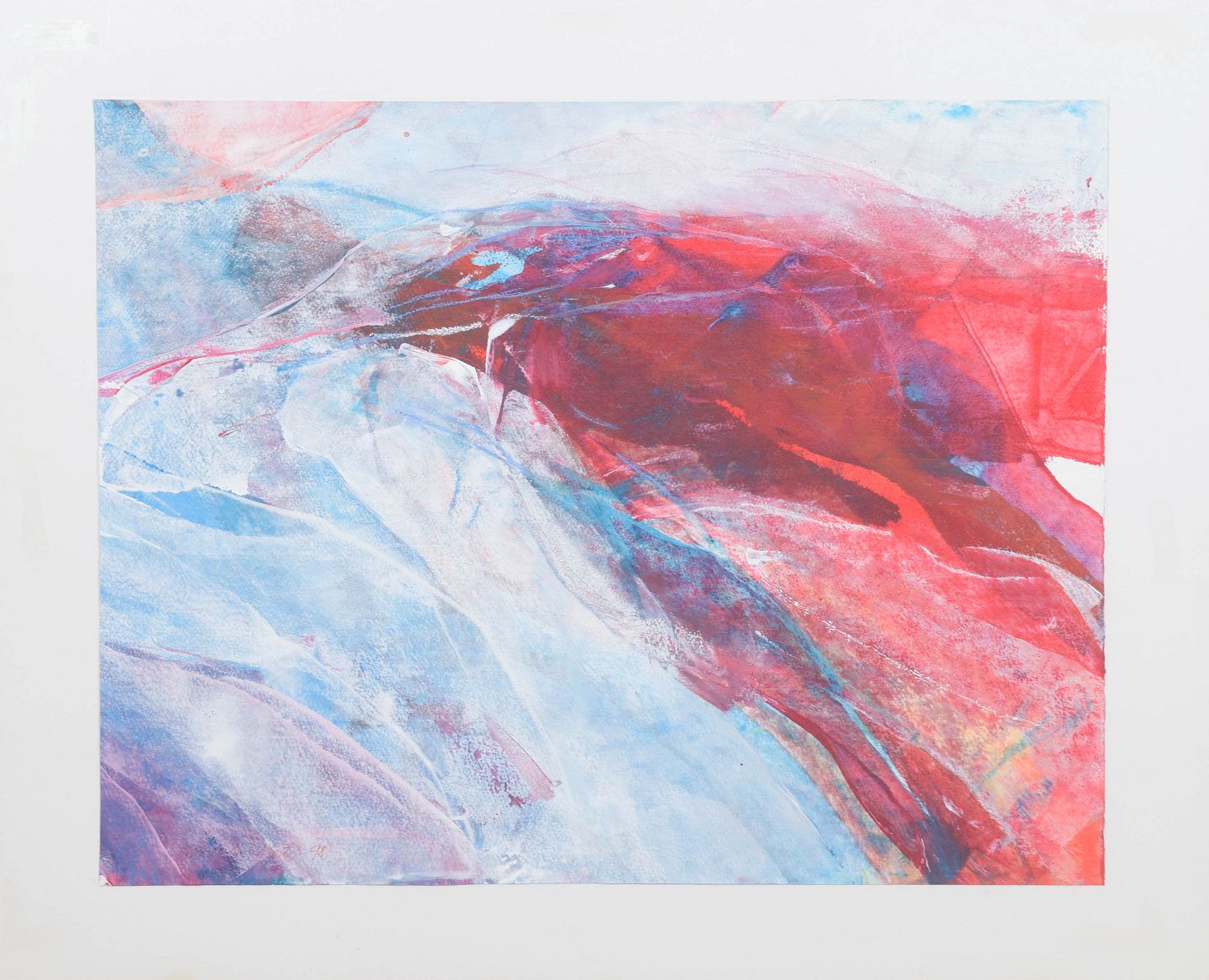 Ursula Matl (født 1944), mixed media, polsk billedkunstner.Abstrakt komposition med eksplosive farvefelter i røde, blå og lyse nuancer, udført i mixed media med dynamisk og gestisk udtryk. Signeret og dateret 1998. Udstillet ved Firenze Biennalen 1999.