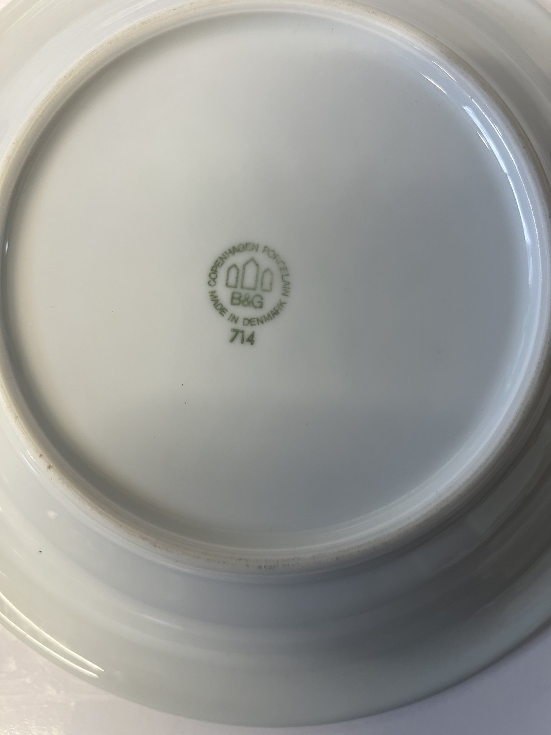 Bing og Grøndahl Jernporcelæn med blå og grøn kant Dyb tallerkenDekorationsnummer 714