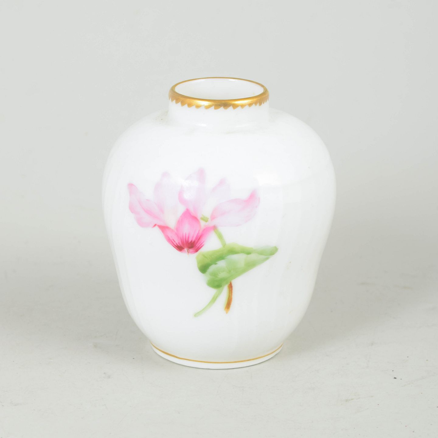 Royal Copenhagen Saksisk blomst, vase.Håndmalet porcelænsvase med blomsterdekoration i Saksisk blomst på hvid glasur, afsluttet med forgyldt kant ved hals og fod. 1. sortering.