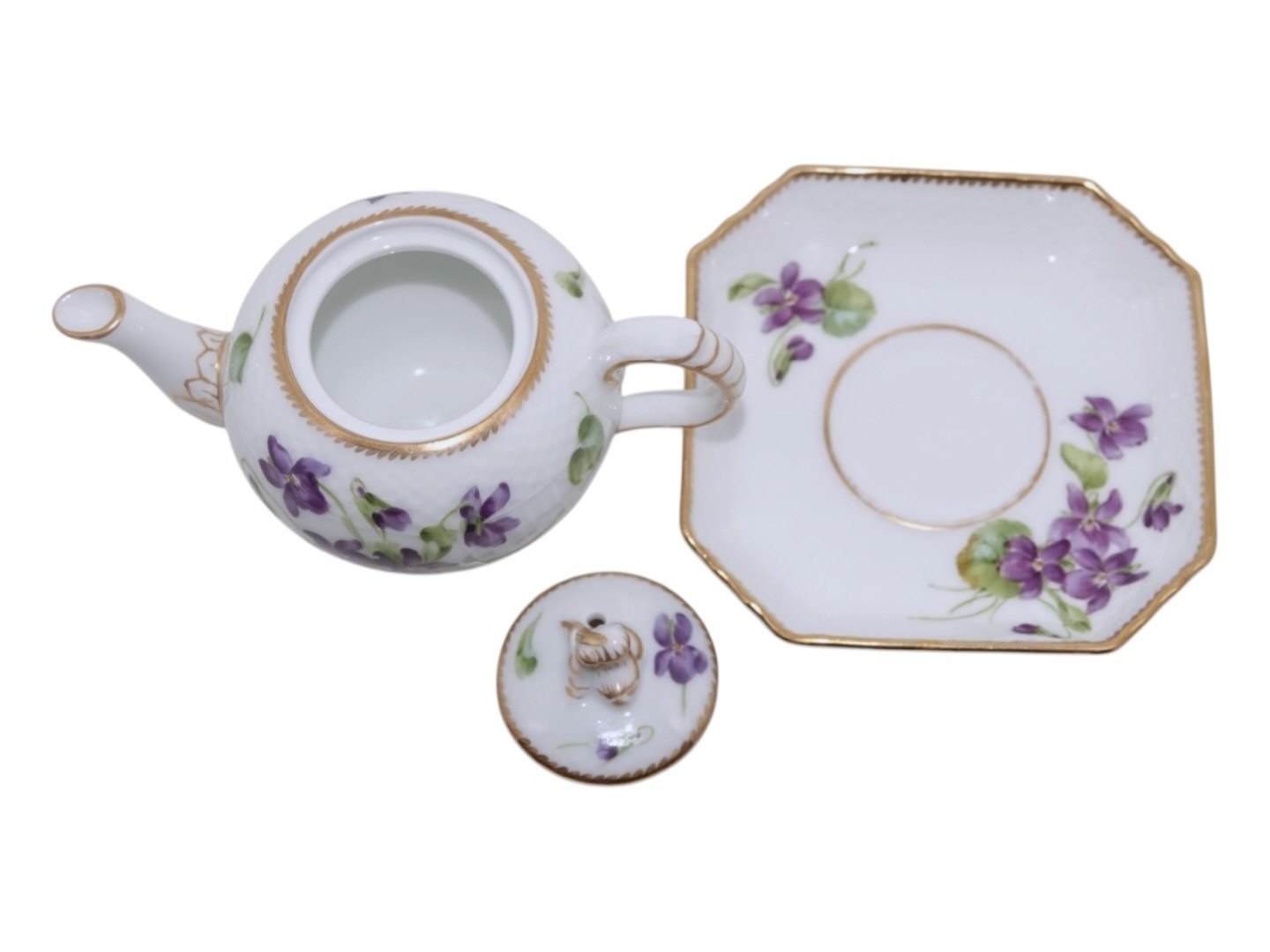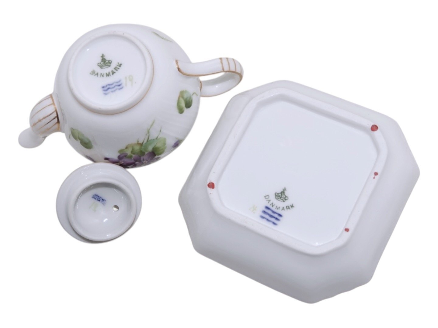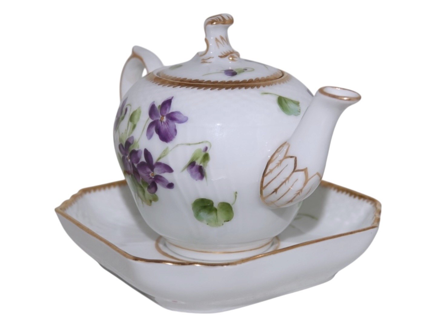 Royal Copenhagen Blå Violer med guldkant, mini mini tekande i dukkestel størrelse.Denne er produceret mellem 1894 og 1897.
