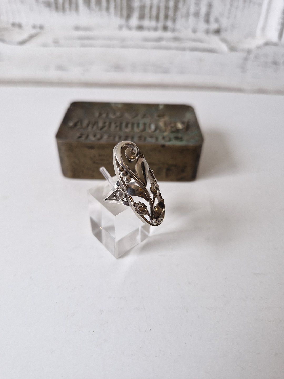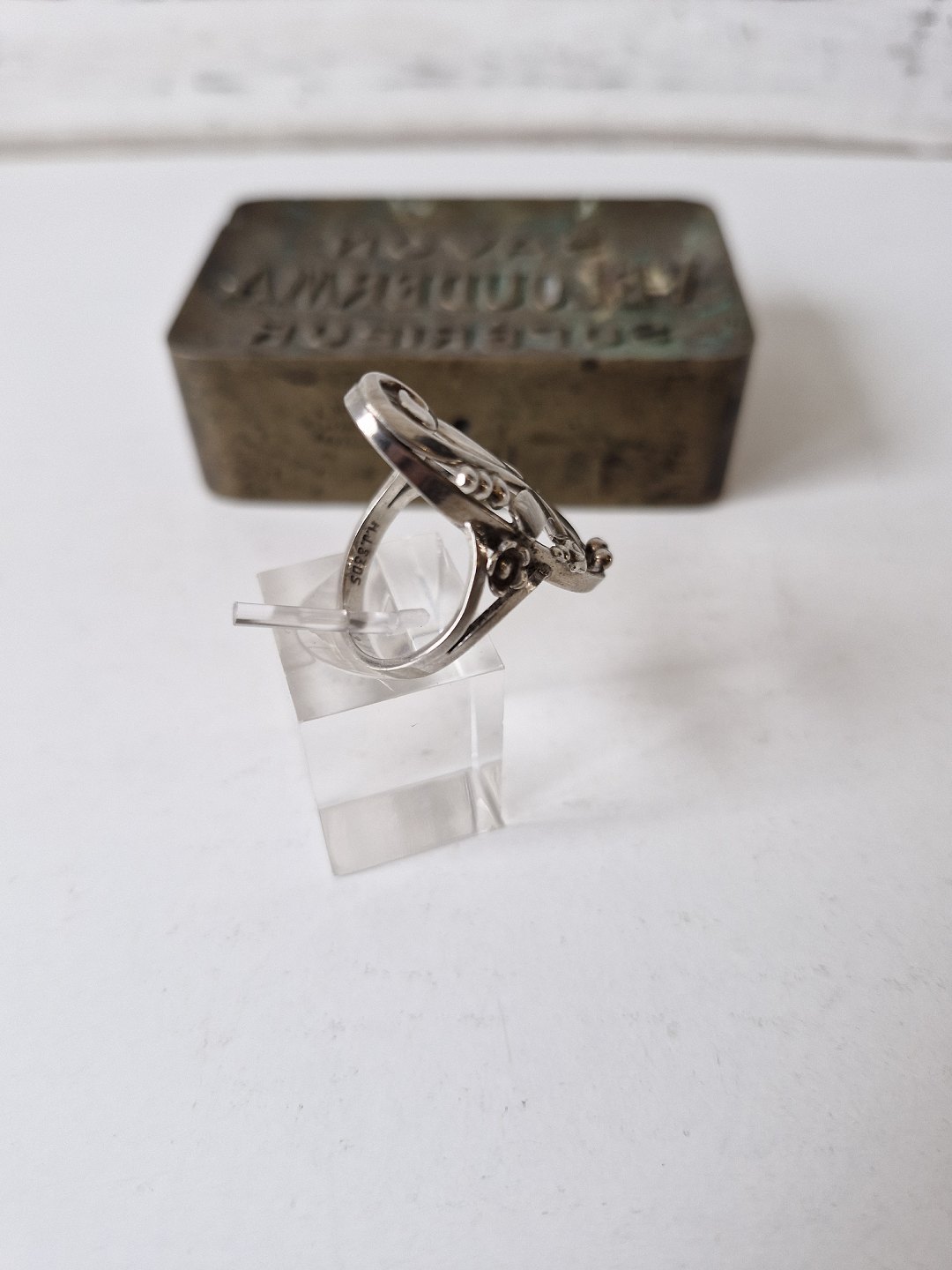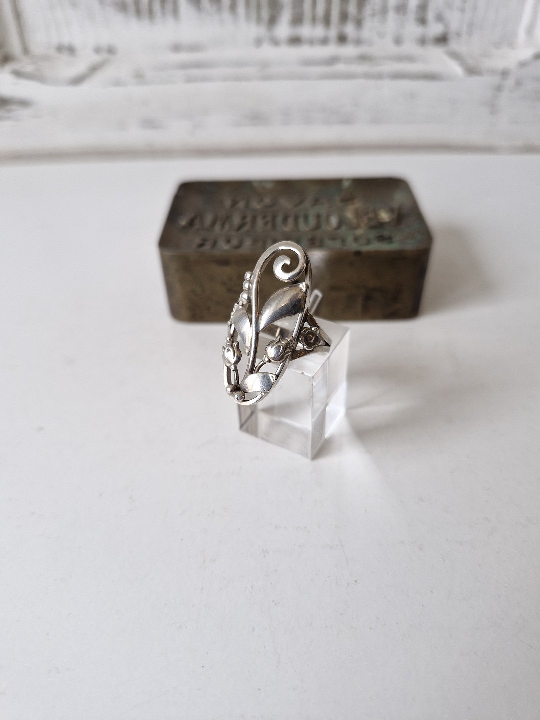 Smuk sølv ring i skønvirkestil dekoreret med blomster og bladeStemplet: HJ - 830s