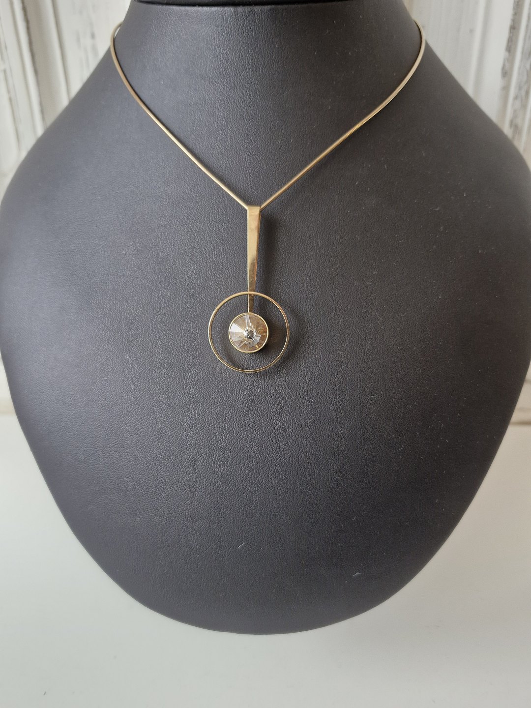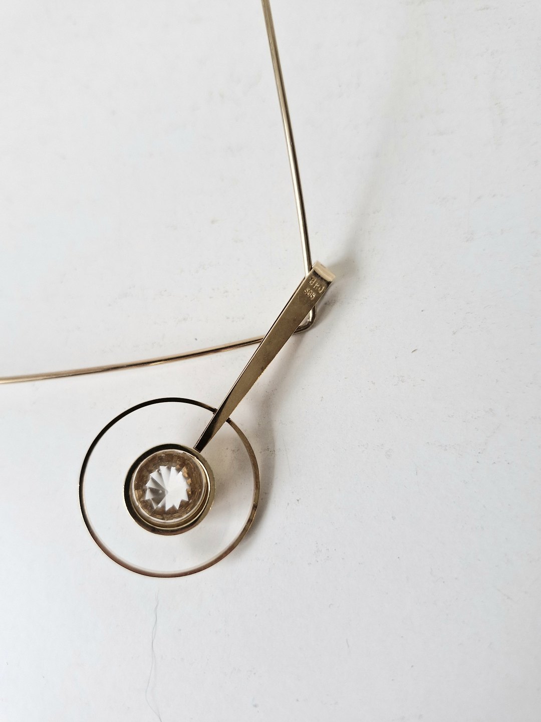 Bræmer Jensen halsring med vedhæng i 14 kt guld prydet med bjergkrystalStemplet Br.J - 585