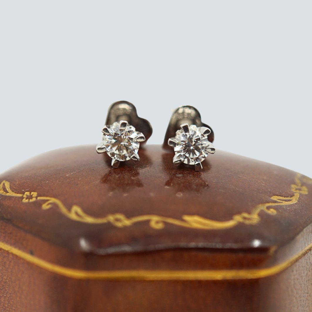 Par diamantørestikker i 18 kt. hvidguld. i alt 0.58 ct. Farve: River. Klarhed: VS SI. Lås formet som hjerte.Stemplet "750".