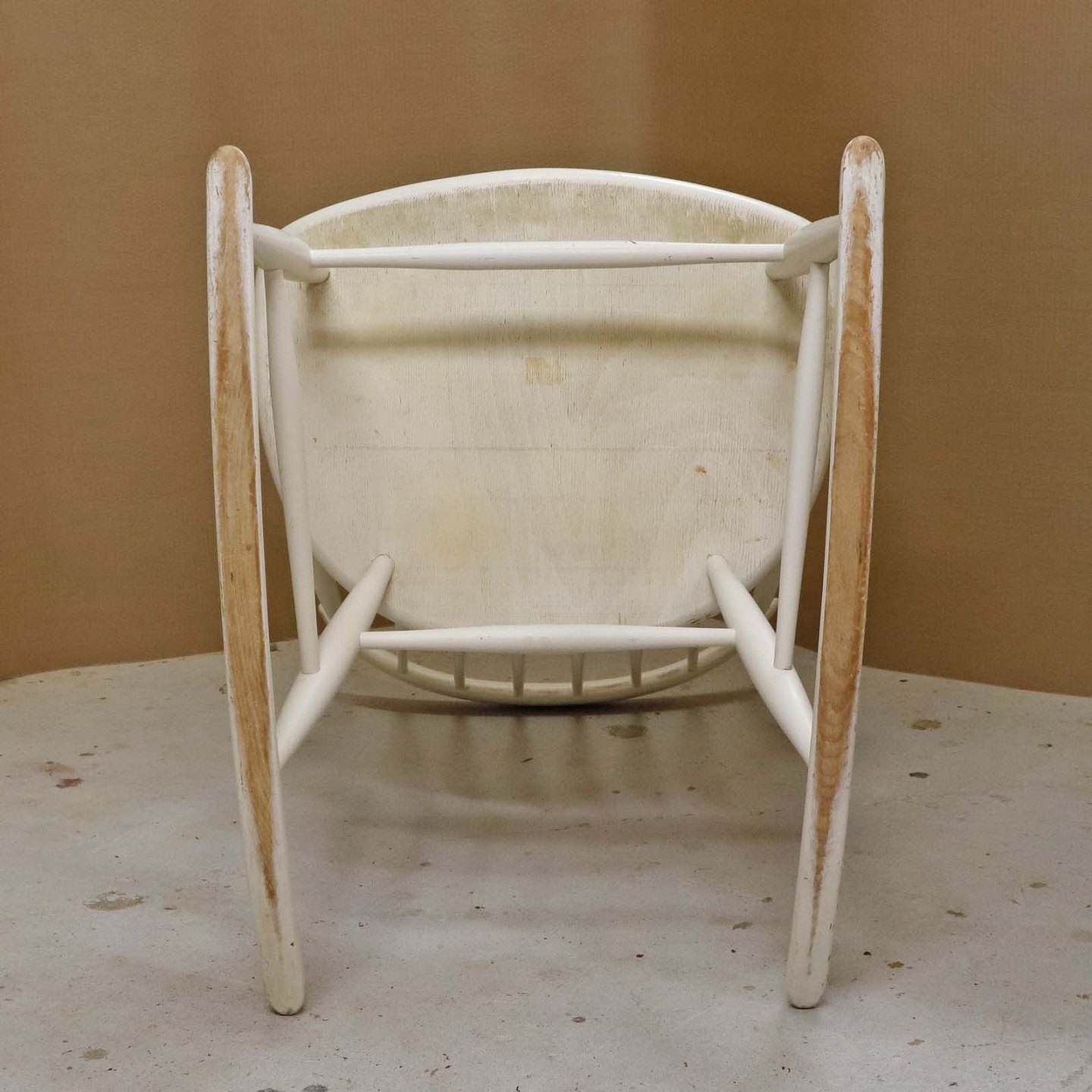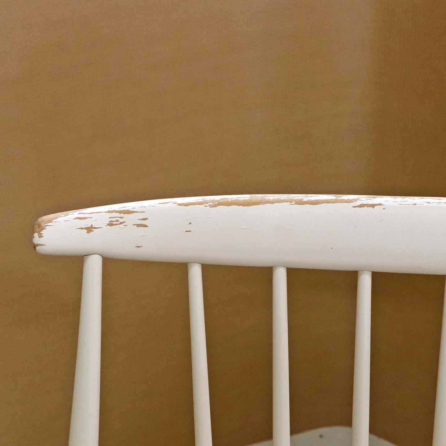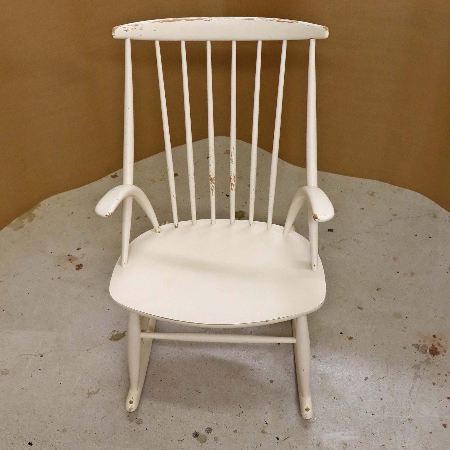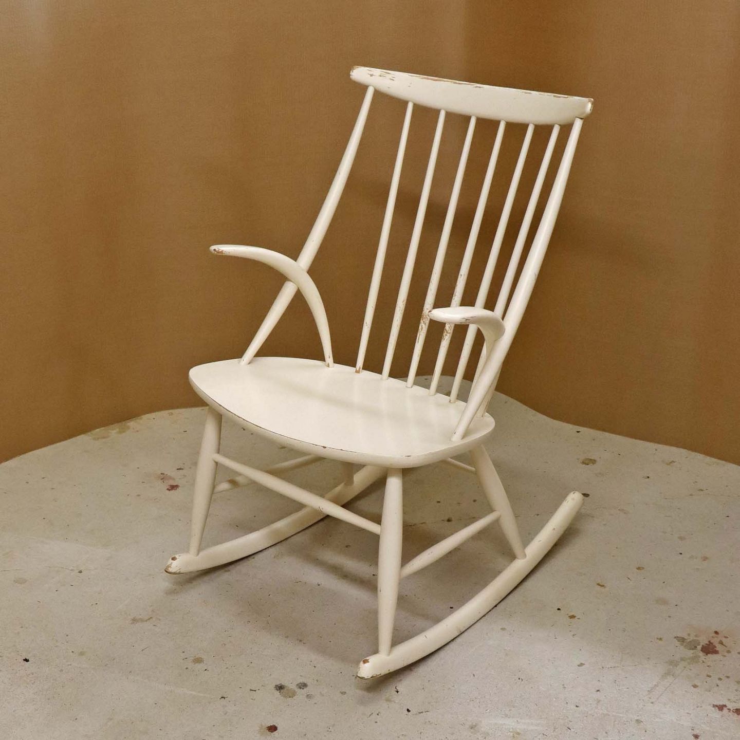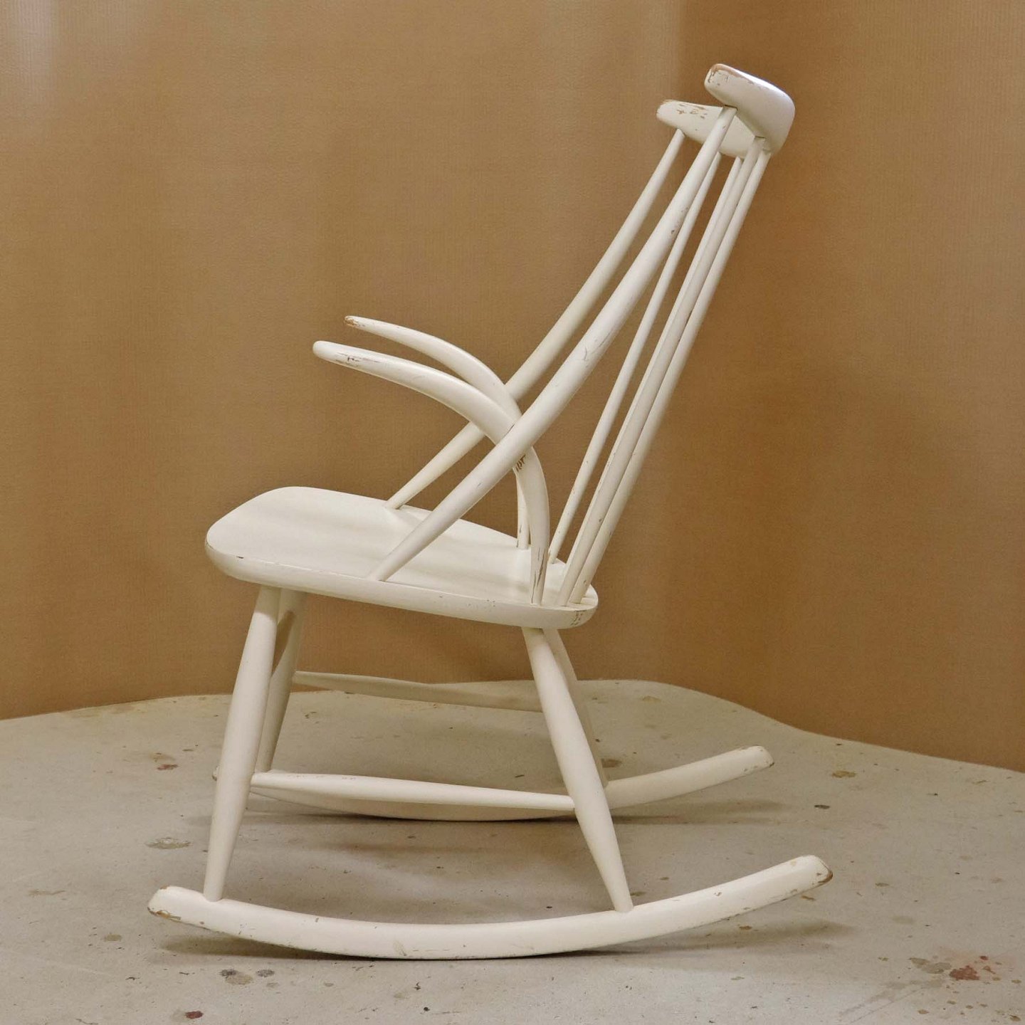 Tremme gyngestol formgivet år 1958 i hvidlakeret træ. Model IW3Design Illum Wikkelsø (1919-1999)