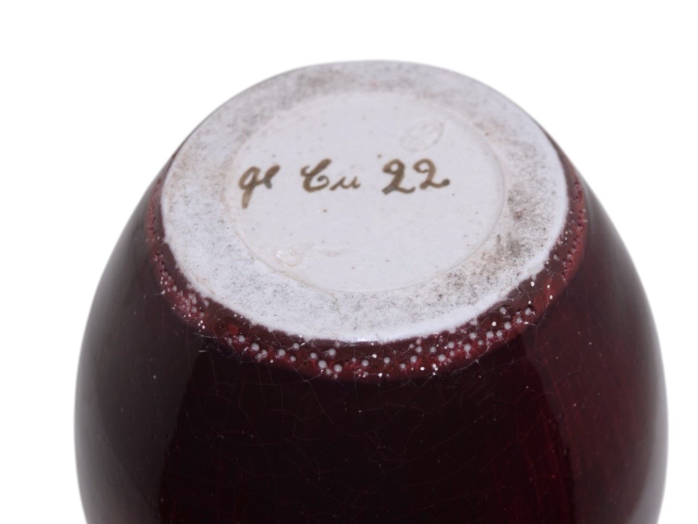 Bing & Grøndahl keramikvase med rød lustreglasur.Den er mærket "gl Cu 22".