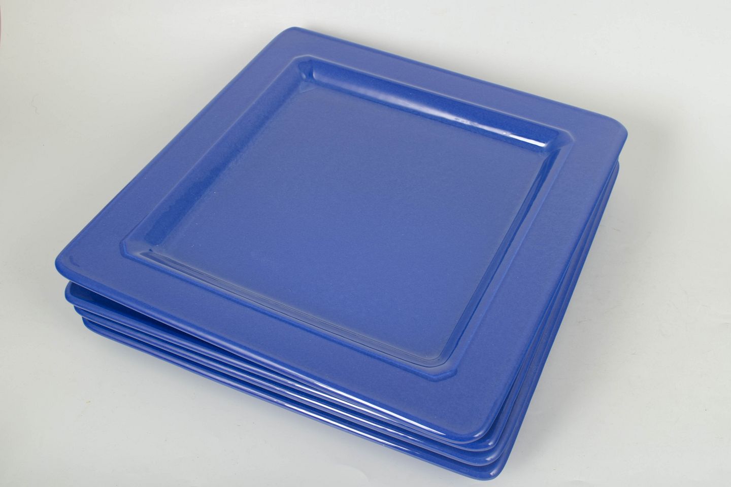 Tiffany Boutique, sæt af fire store tallerkner.Enkelt og stilrent sæt i glaseret keramik bestående af fire store firkantede tallerkner i ensartet blå farve med blank overflade.