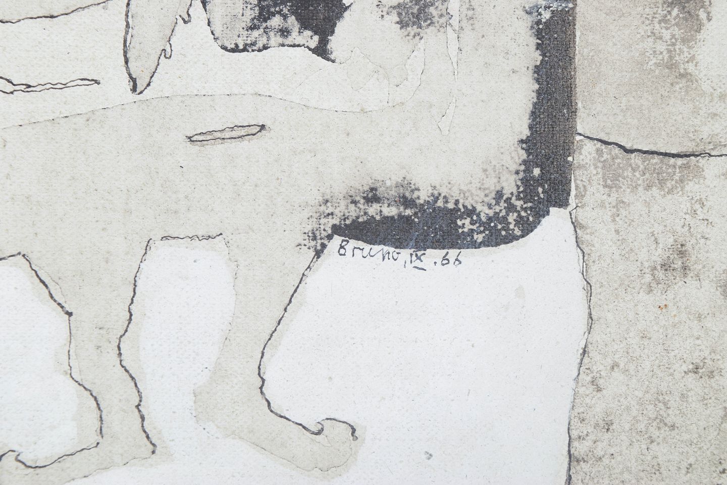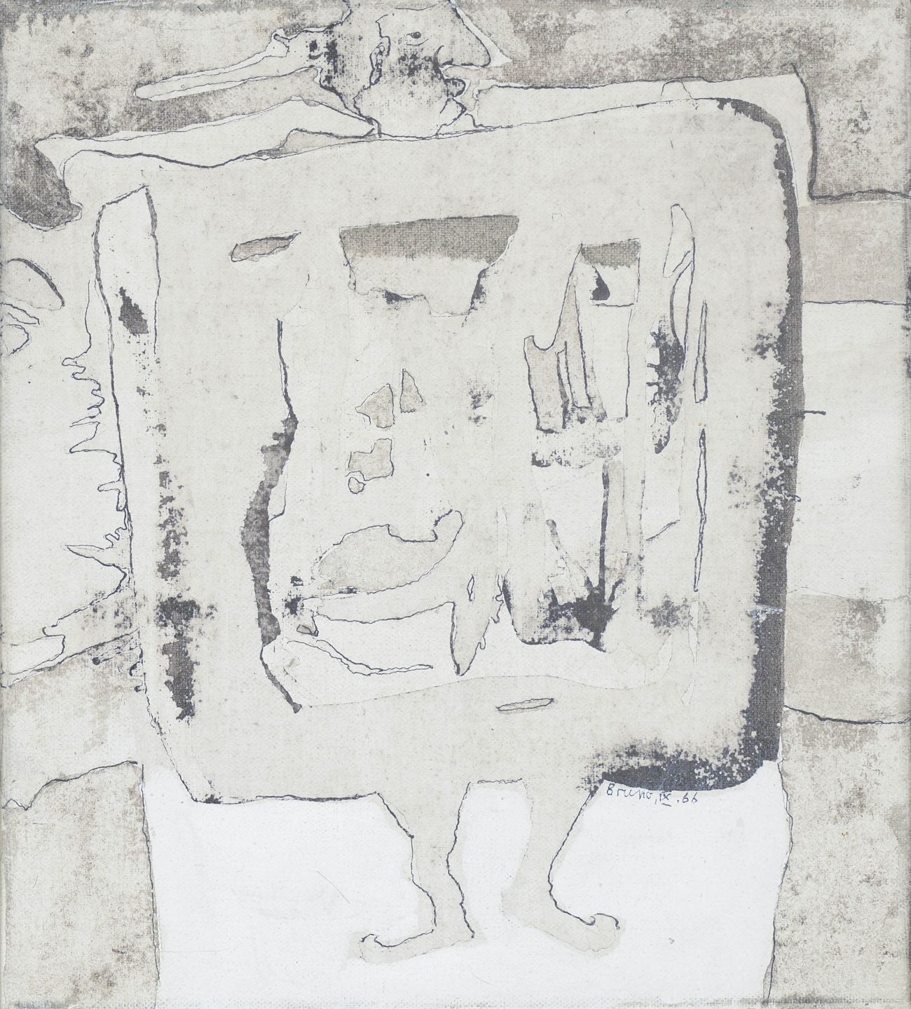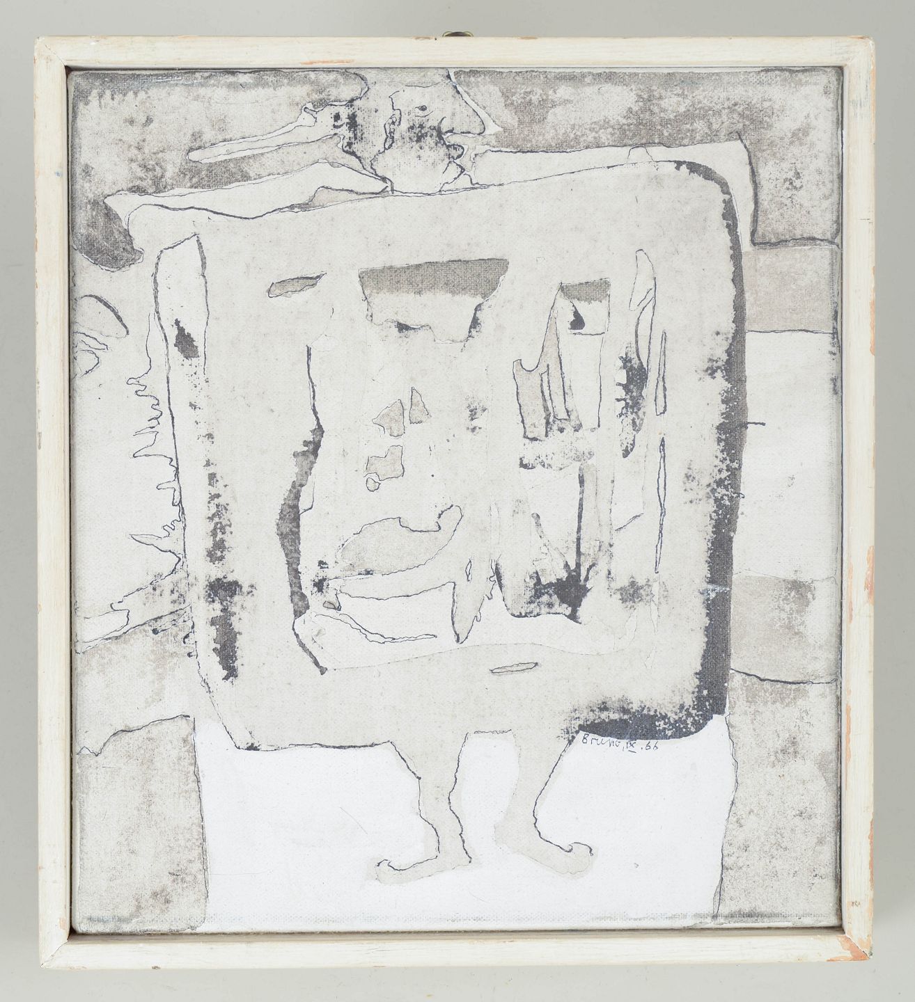 Tysk maler, abstrakt oliemaleri på lærred.Abstrakt komposition udført i olie på lærred med afdæmpede gråtoner og organiske former. Signeret Bruno 66.